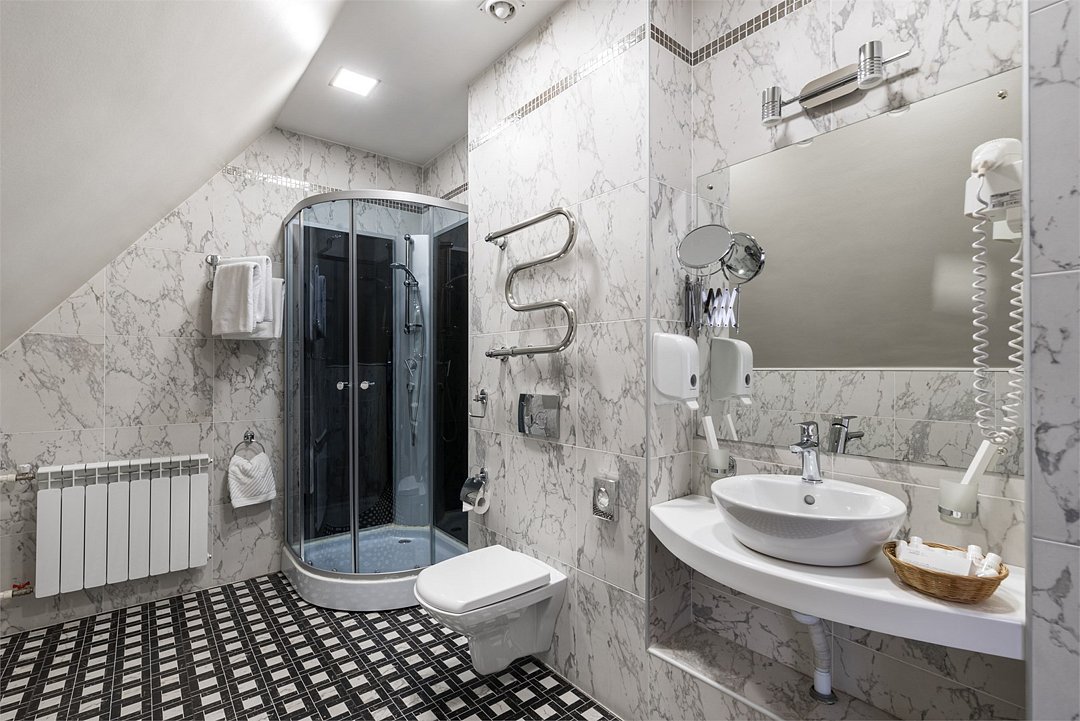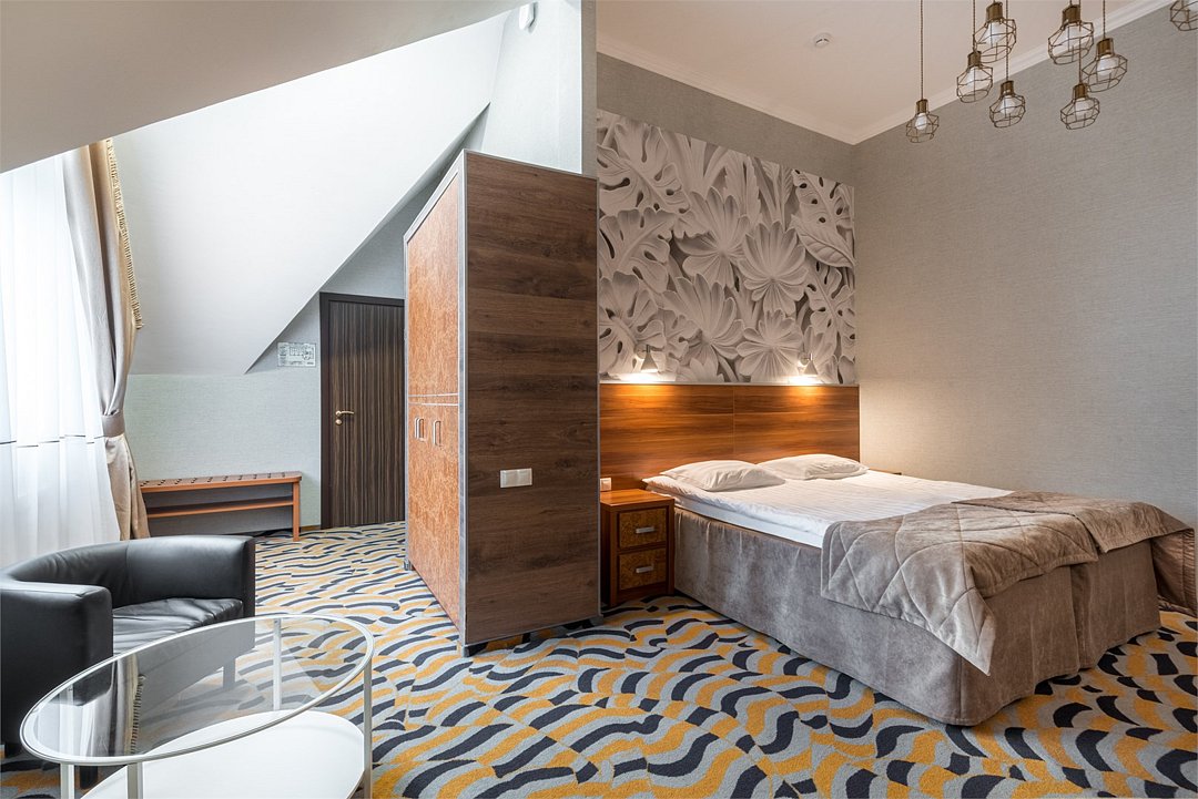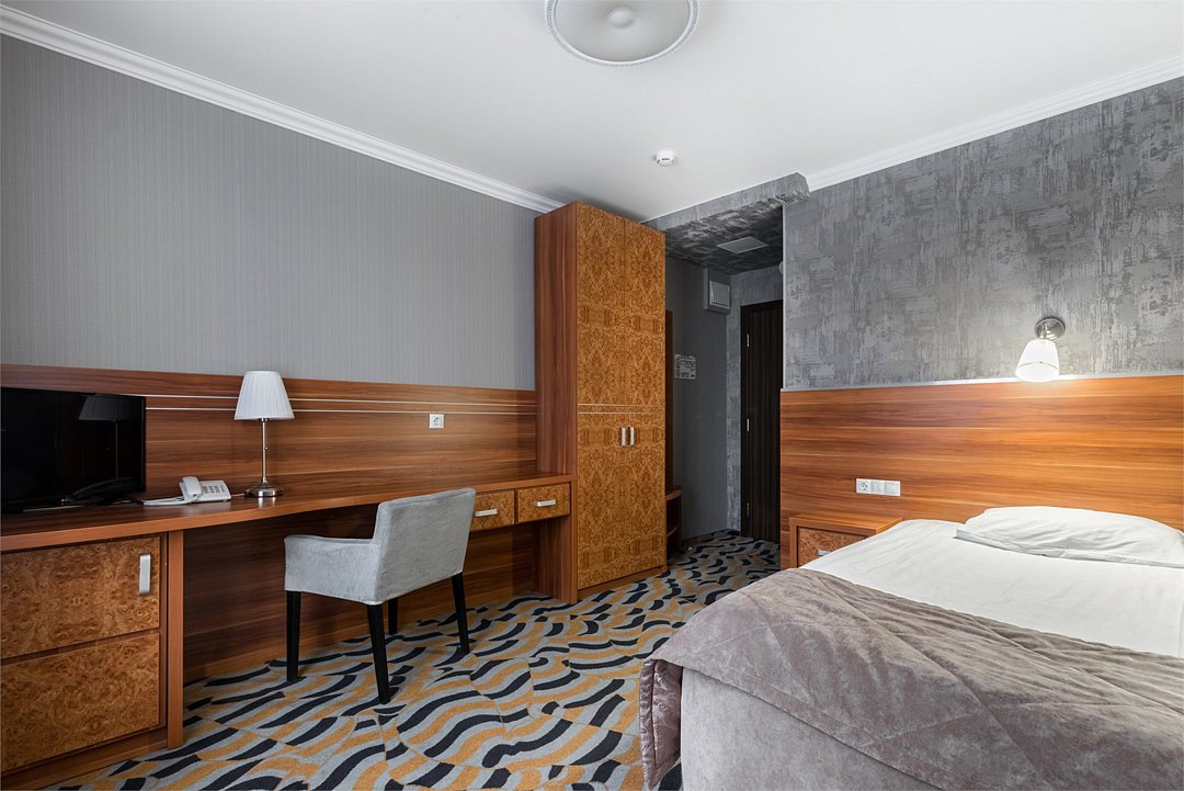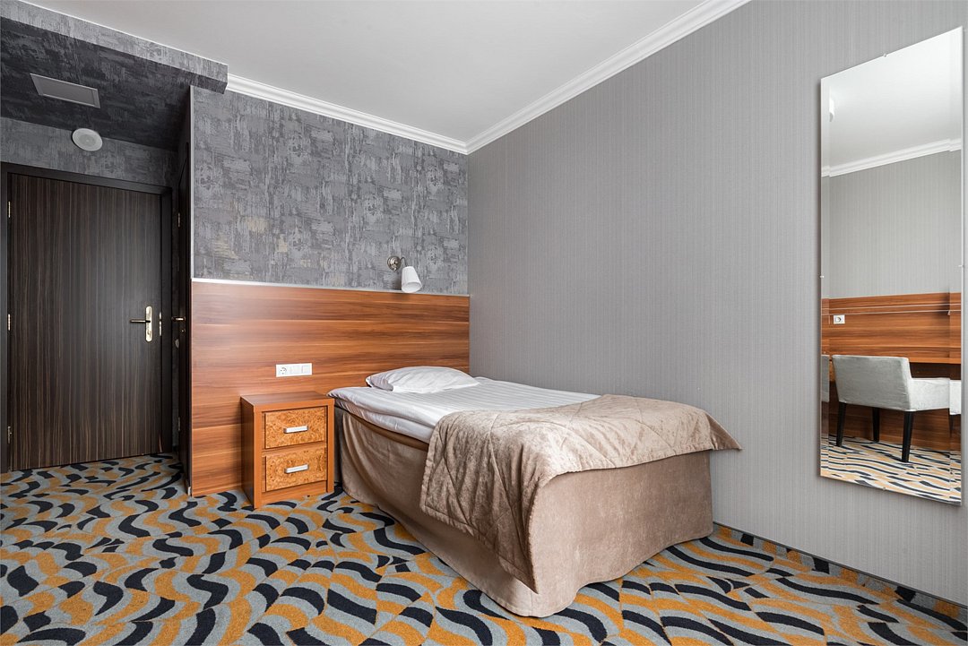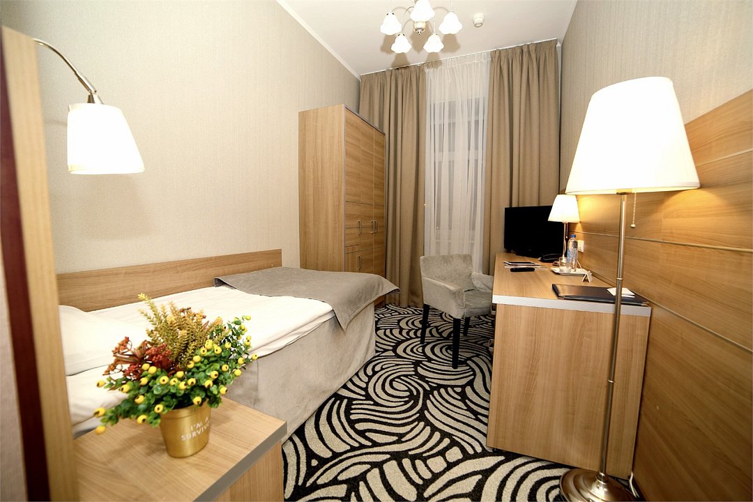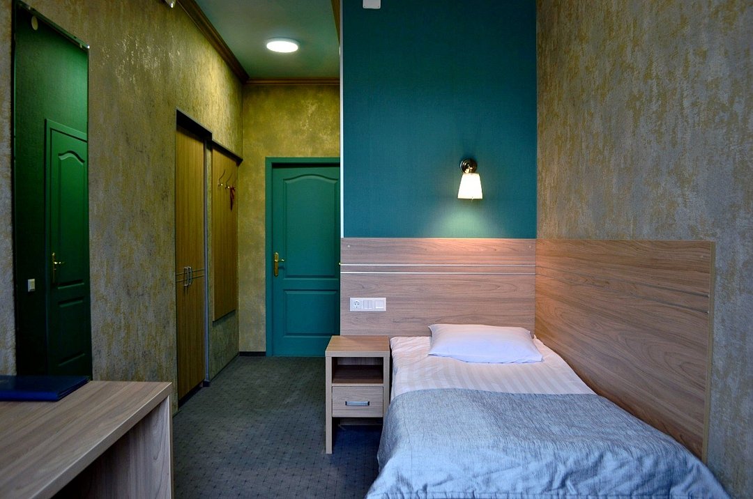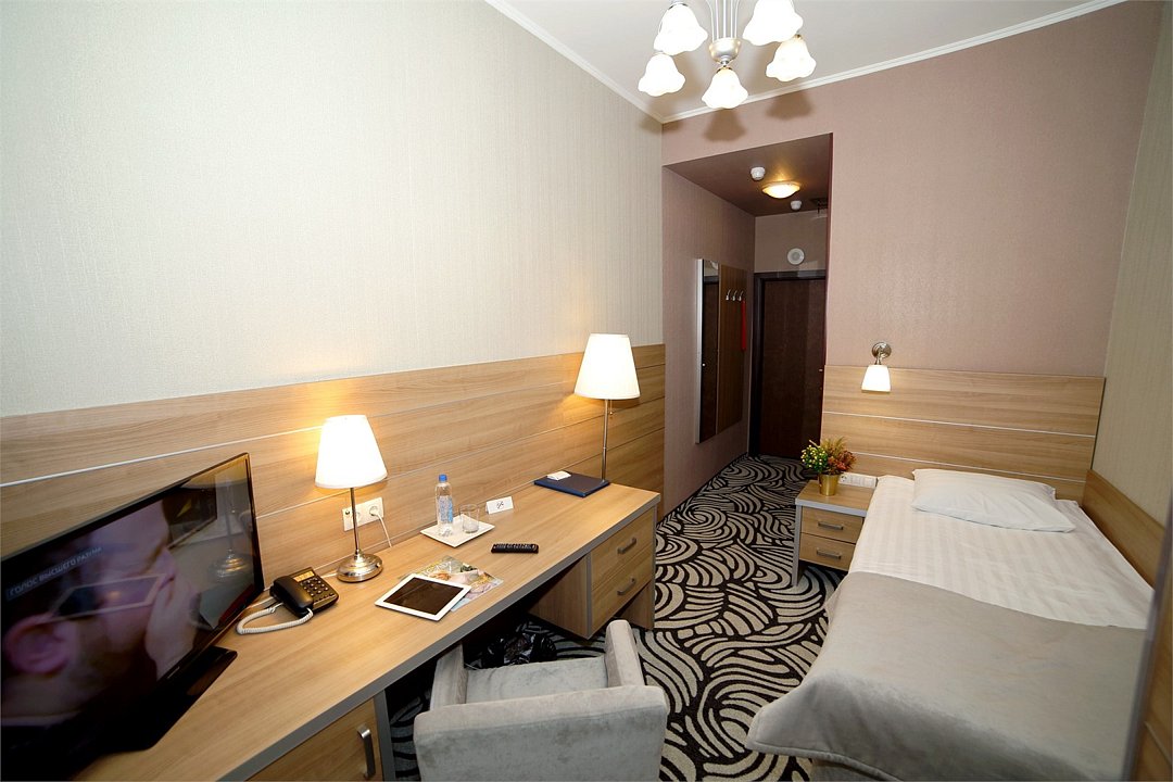 Стандартный номер для одного гостя. Общая площадь номера - 15 кв. м. Номера этой категории располагаются на 2, 3 и 4 этажах. Номер укомплектован односпальной кроватью. Размещение двух и более гостей в номере не представляется возможным.Услуги и удобства