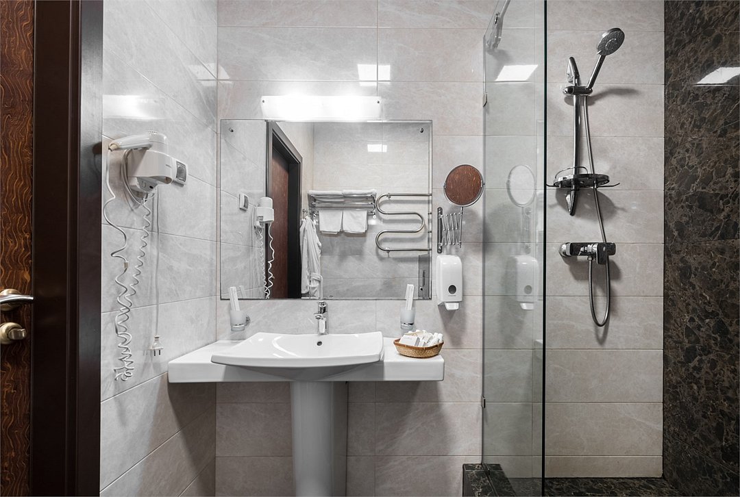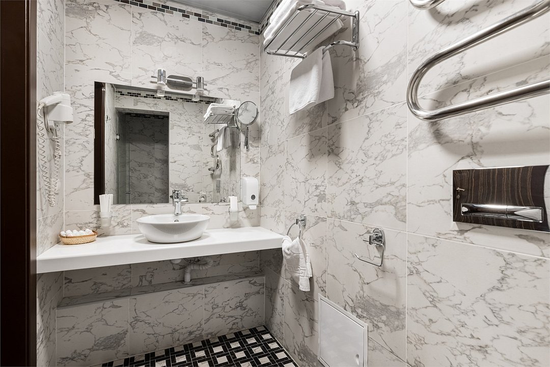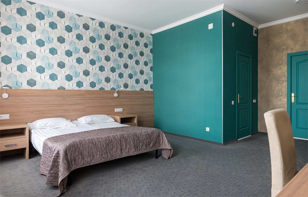 Просторный и светлый двухместный номер с увеличенной площадью и улучшенным оформлением. Общая площадь номера - 25 кв. м. Номера этой категории располагаются на 1, 2 и 4 этажах. На выбор есть номера как с большой двухспальной кроватью, так и с двумя раздельными односпальными. Каждый номер оснащен кондиционером, работающим как на охлаждение, так и на обогрев.Услуги и удобства