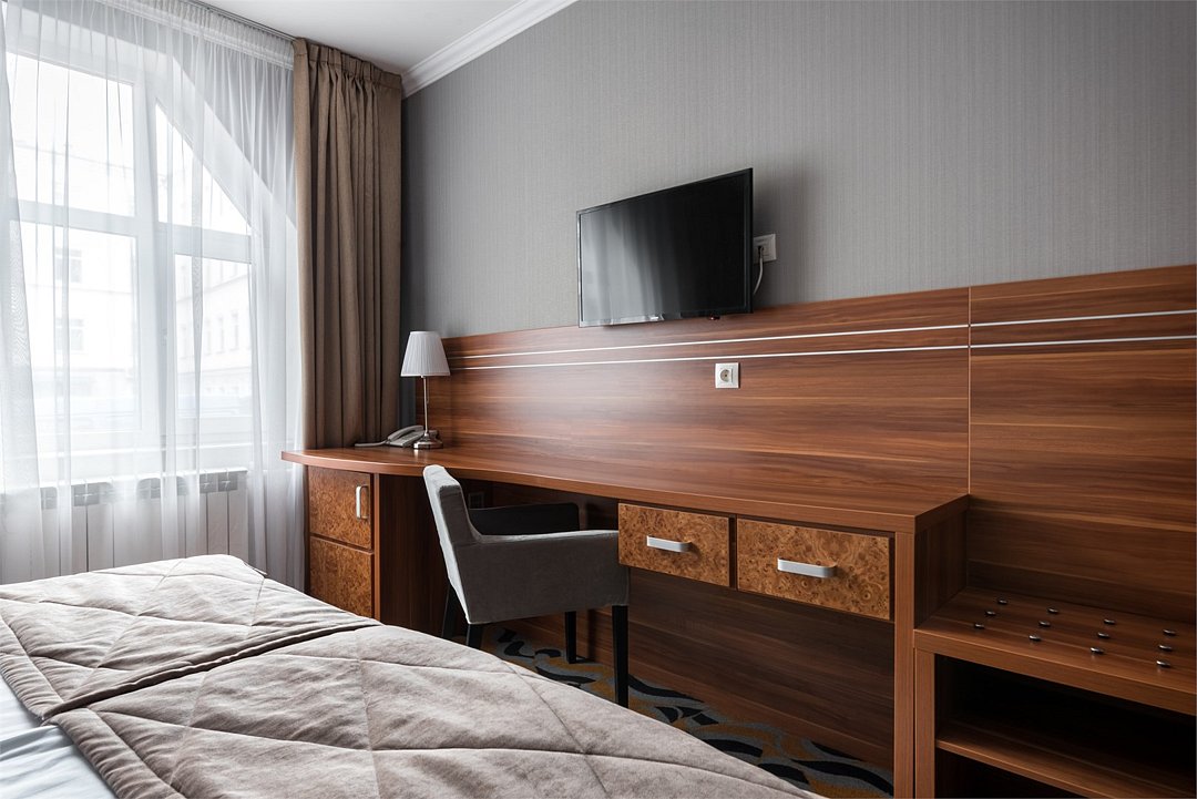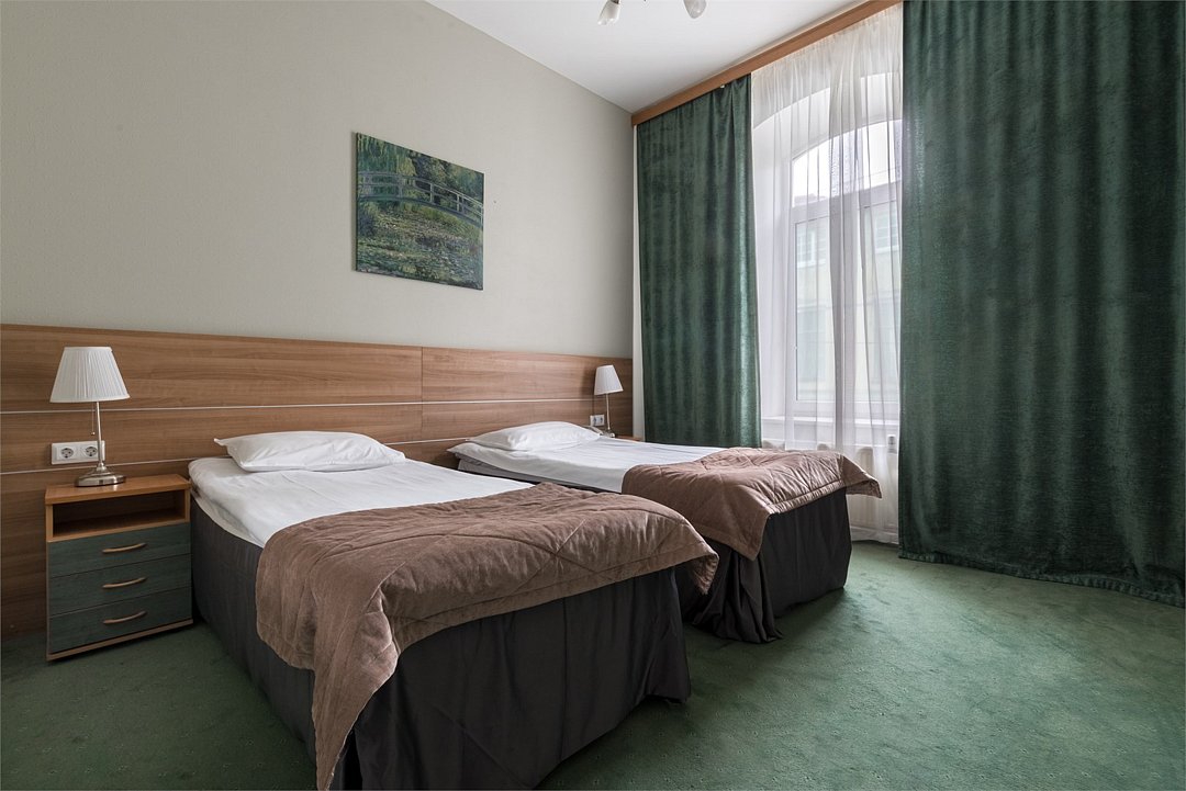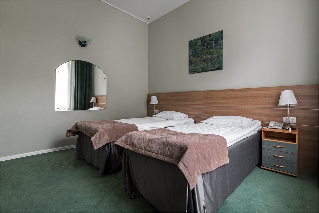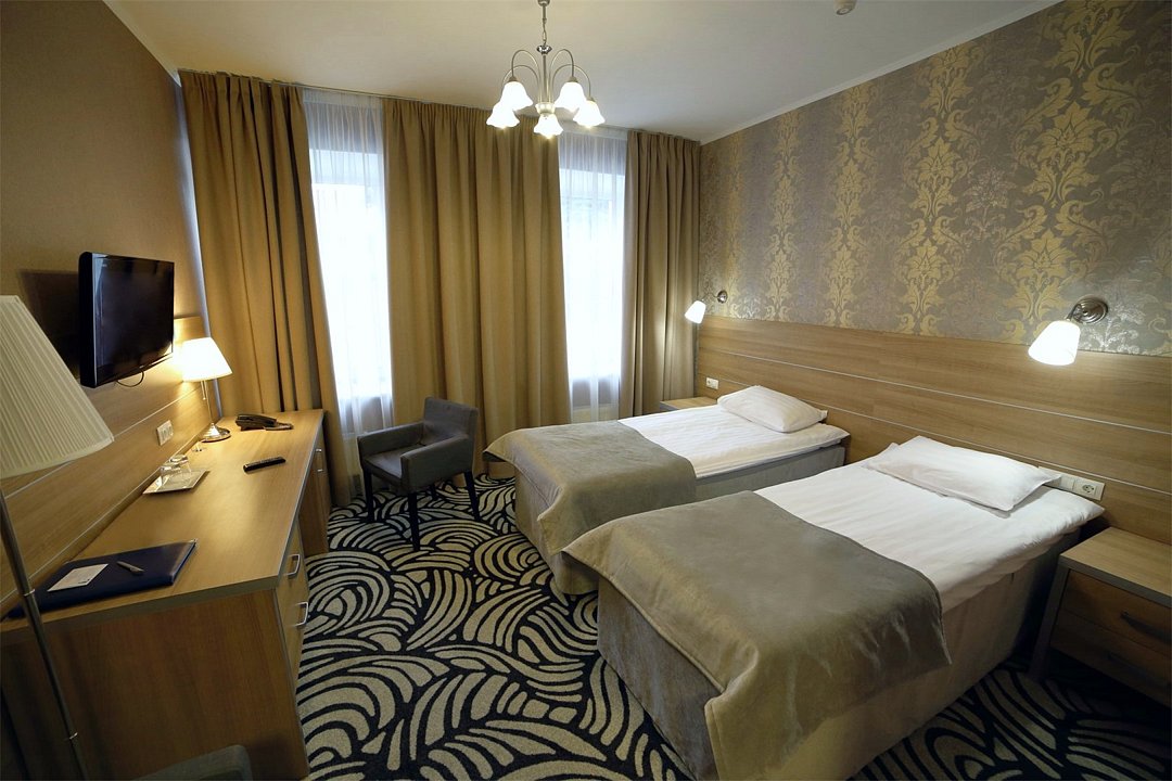 Просторный и светлый двухместный номер в базовом оформлении. Общая площадь номера - 20 кв. м. Номера этой категории располагаются на 2, 3 и 4 этажах. На выбор есть номера как с большой двухспальной кроватью, так и с двумя раздельными односпальными.Услуги и удобства