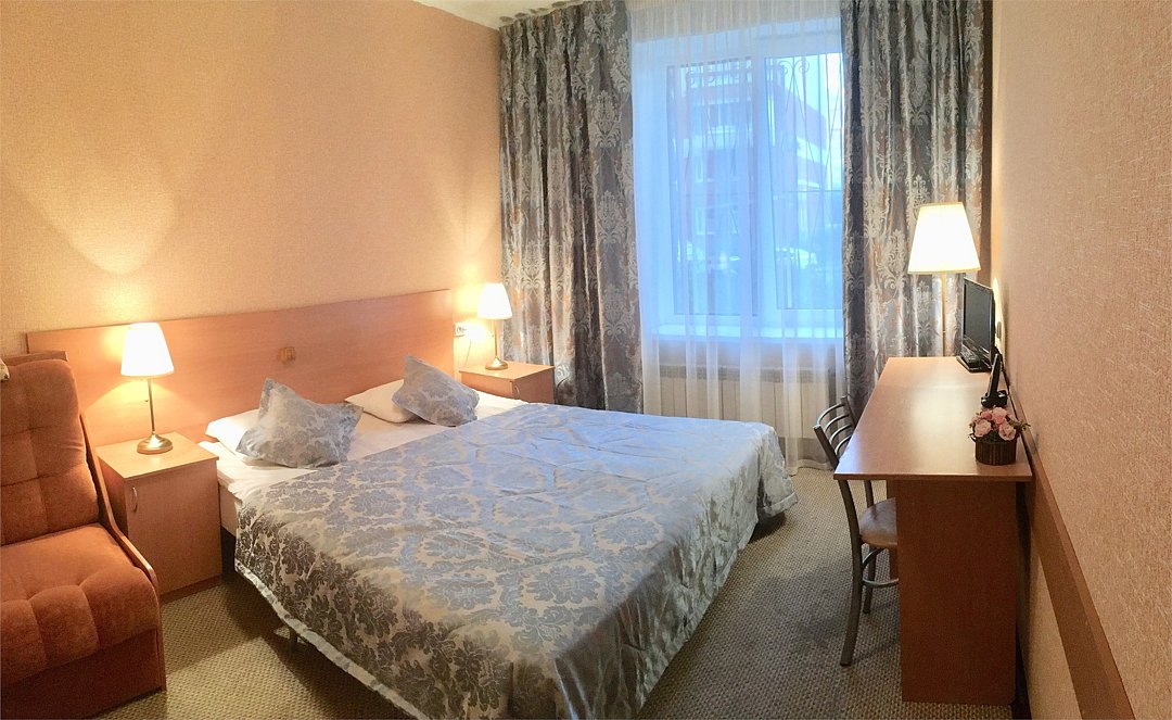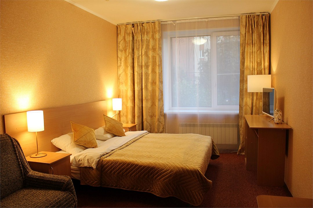 Отличная, просторная, уютная комната. Ж/К телевизор, чайник, чашки, занавески blackout. Wi-Fi бесплатно. В номере собственная ванная комната и туалет.Услуги и удобства