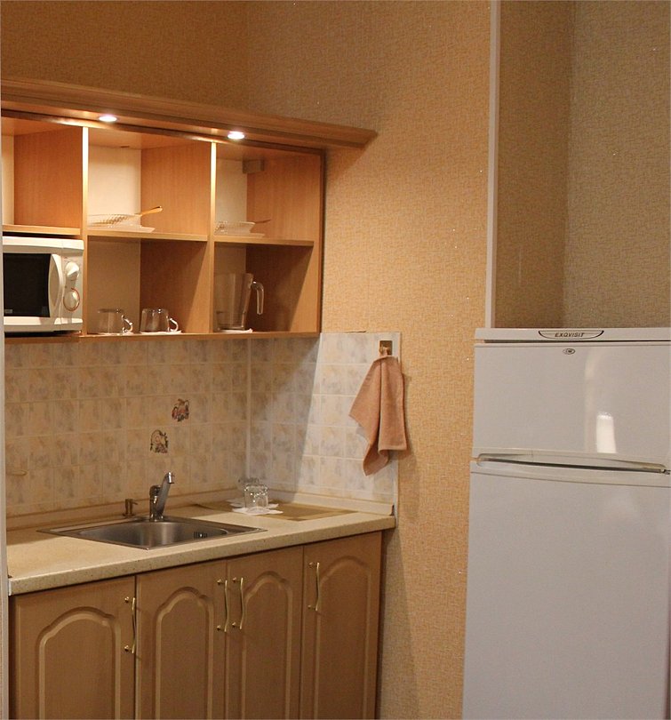 Прекрасный, очень просторный номер "Studio" с бесплатным Wi-Fi, Ж/К телевизором, диваном, кухней, чайником, микроволновой печью, холодильником. В комнате своя отдельная ванная комната и туалет.Услуги и удобства