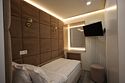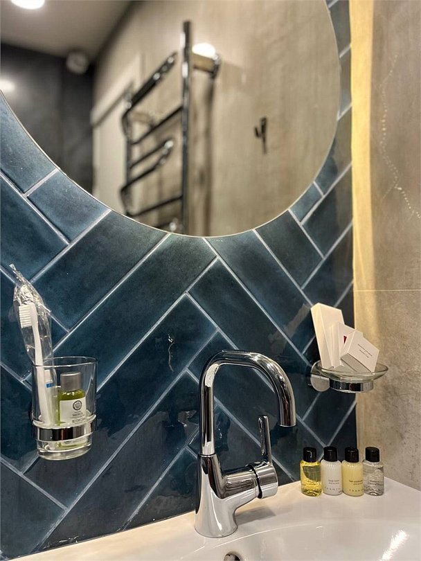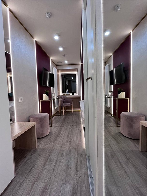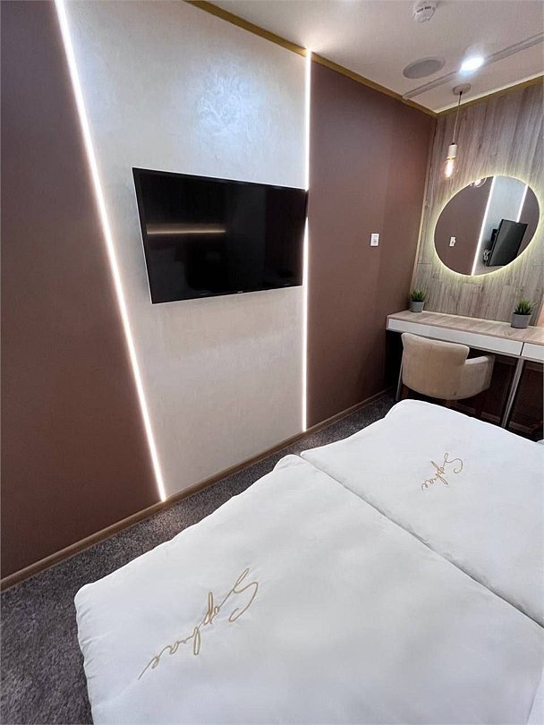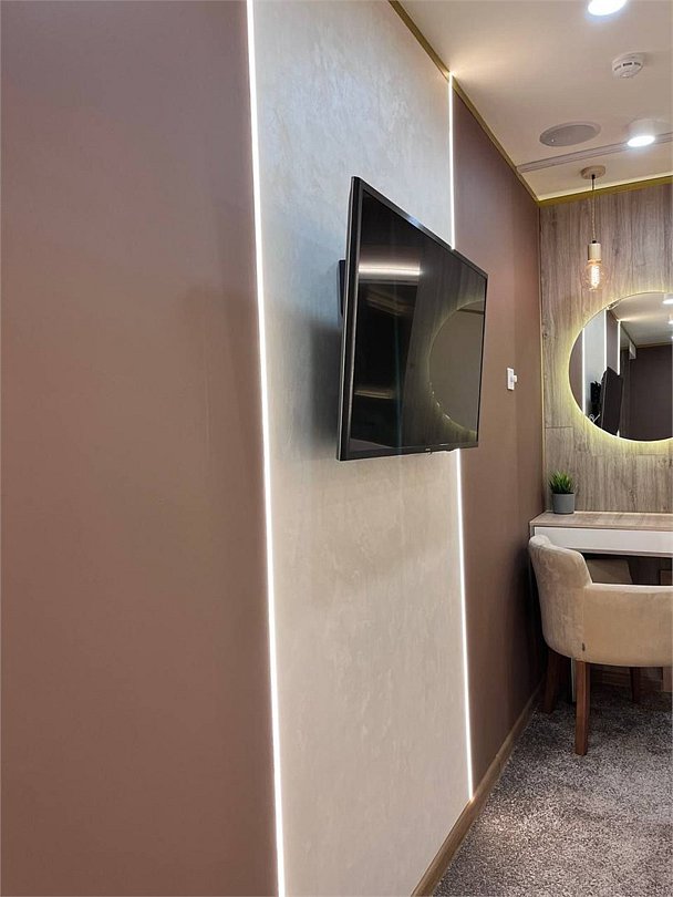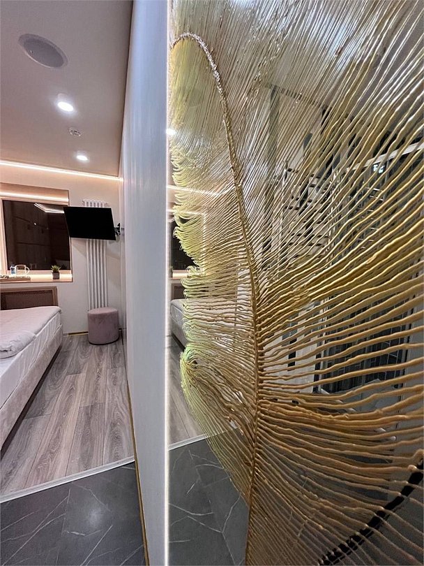 Удобный, небольшой номер в современном стиле с росписью на зеркалах, категории «Одноместный эконом», создан для гостей, предпочитающих функциональность. Идеален, при одноместном размещении. Вся обстановка располагает к неспешному отдыху. Номер оборудован LCD–телевизором, просторным шкафом, удобным мягким пуфиком, и Wi-Fi. Банные принадлежности, тапочки, мягкие полотенца. Без труда, можно заварить себе ароматный чай или кофе .При необходимости, гостям бесплатно предоставим утюг и гладильную доску.Услуги и удобства