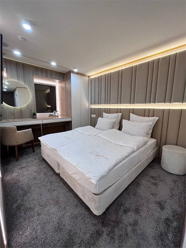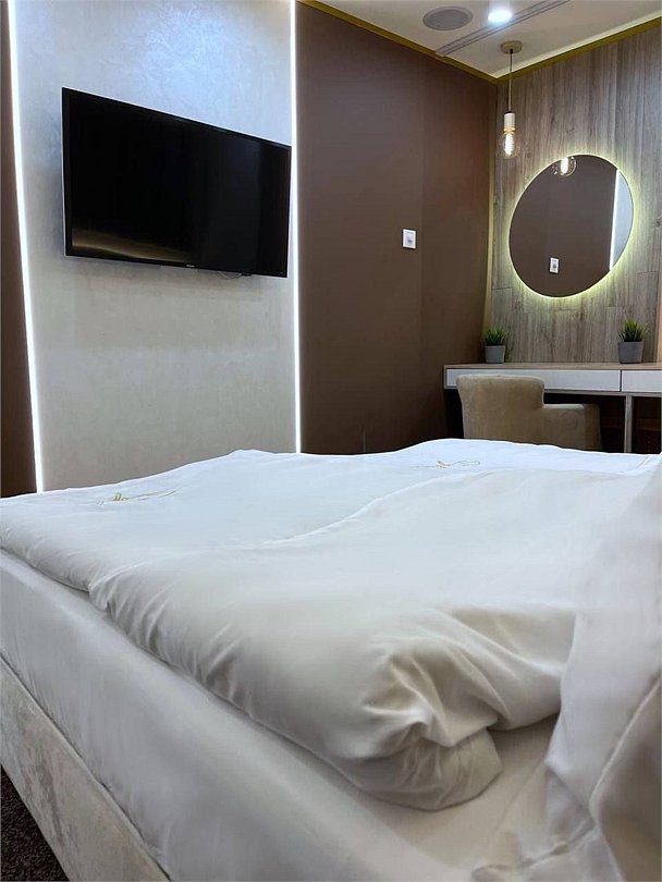 Просторный и светлый,комфортабельный номер ,выполнен в благородных оттенках Пралине,стильный и современный. Площадью до 16 кв.м. Окна этого номера, выходят на тихий, милый дворик. В данном номере, имеется удобная двуспальная кровать. Также в номере предусмотрена рабочая зона, с функциональным рабочим столом за которым вы сможете расположиться в мягком и уютном кресле. Телевизор расположенный в центре комнаты для комфортного просмотра любимых каналов. Удобная ванная комната оборудована всеми необходимыми принадлежностями. Наши нежные банные полотенца окутают Вас уютом и домашним теплом. Беспроводной интернет, сейф, холодильник, кофеварка находиться в свободном доступе. Любую вашу просьбу поможет осуществить наши прекрасные и отзывчивые сотрудники . Пребывание в отеле Megapolis, сделает Ваш отдых незабываемым.Услуги и удобства