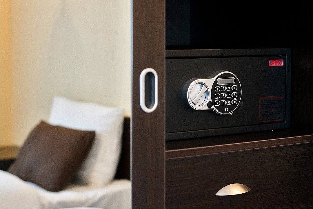 Wi-Fi, кондиционер, светильник, фен, система безопасности, электронные замки, душевая кабина, халаты, банные полотенца, тапочки, балкон с красивым видом, две односпальные или большая двуспальная кровать, диван, шкаф для одежды, журнальный столик, письменный стол, зеркало, обслуживание номеров, сейф, косметическое зеркало, ковровое покрытие, отопление, вид на город, кулер на этаже, вид во двор, ламинат, туалетный столик, туалетные средства, панорамные окна, внутренний телефон, телевизор с плоским экраном, мини-холодильник, номер для некурящих, чайная станция, бутилированная вода, без питомцевВ гостиничном номере