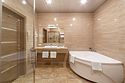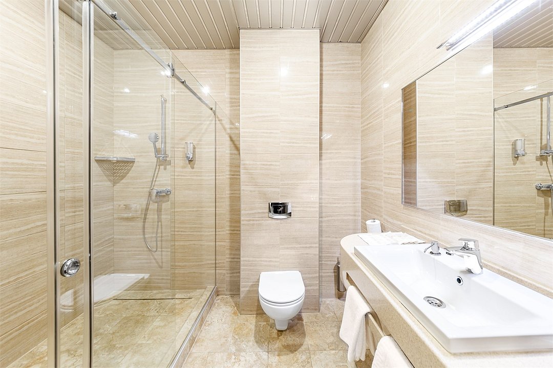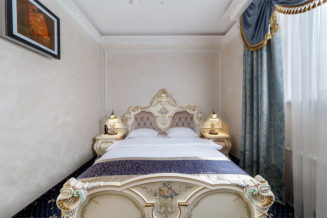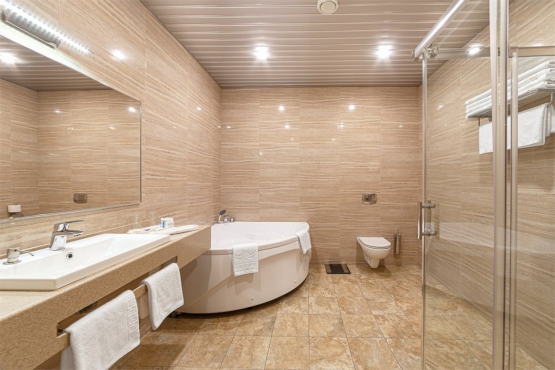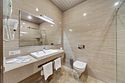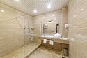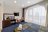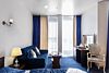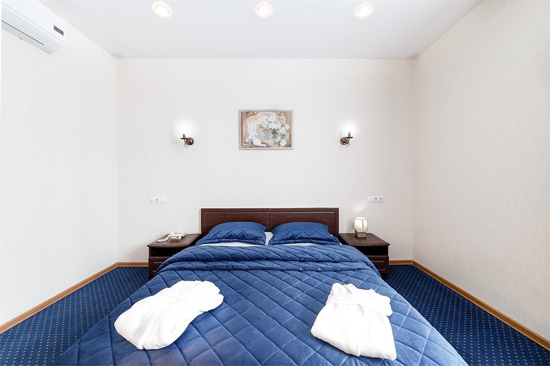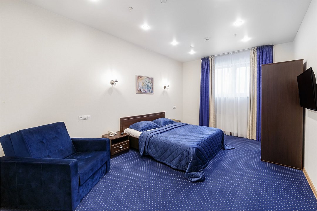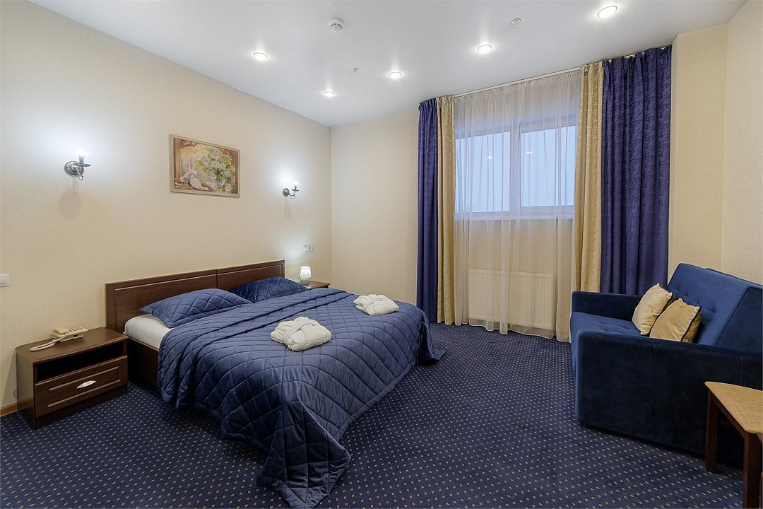 Просторный, светлый номер с панорамными окнами, оформлен элегантно в светло-бежевых-синих тонах. Площадь номера позволяет разместить дополнительное спальное место для ребенка или одного взрослого. Отличное решение для деловой поездки и комфортного отдыха.Услуги и удобства