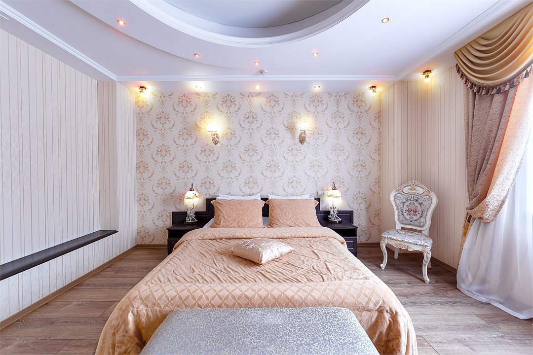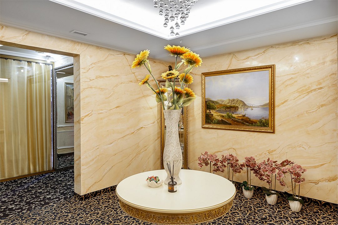 Просторный двухкомнатный номер с изысканным интерьером. Общая площадь 67м2. Именно этот номер выбирают для свадеб, фото и видеосъемок. Здесь много света и тепла!Услуги и удобства