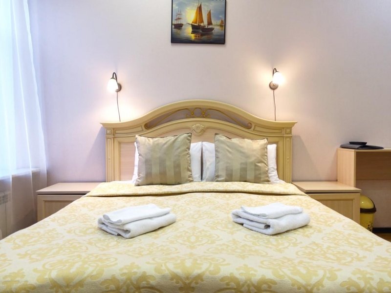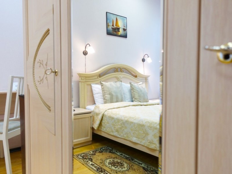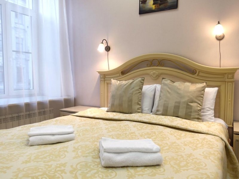 Номер повышенной комфортности. Оснащен большой двухспальной кроватью, плазменный телевизором, холодильником, электрическим чайником и посудой для приготовления чая/кофе. Номер располагает собственной просторной ванной комнатой с душевой кабиной, умывальником, туалетом. Отличительной особенностью данного номера является балкон, оформленный в виде театральной ложи и обрамленный живыми цветами, с которого открывается прекрасная панорама всего Невского проспекта, вплоть до Адмиралтейства.В номере