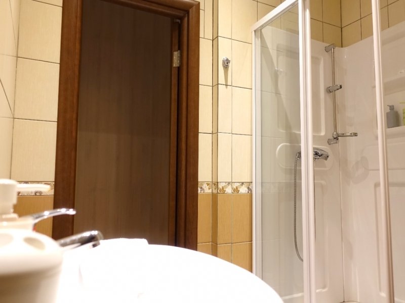 Номер повышенной комфортности. Оснащен большой двухспальной и односпальной кроватью, плазменный телевизором, холодильником , электрическим чайником и посудой для приготовления чая/кофе. Номер располагает просторной собственной ванной комнатой с душевой кабиной и отдельным туалетом.В номере
