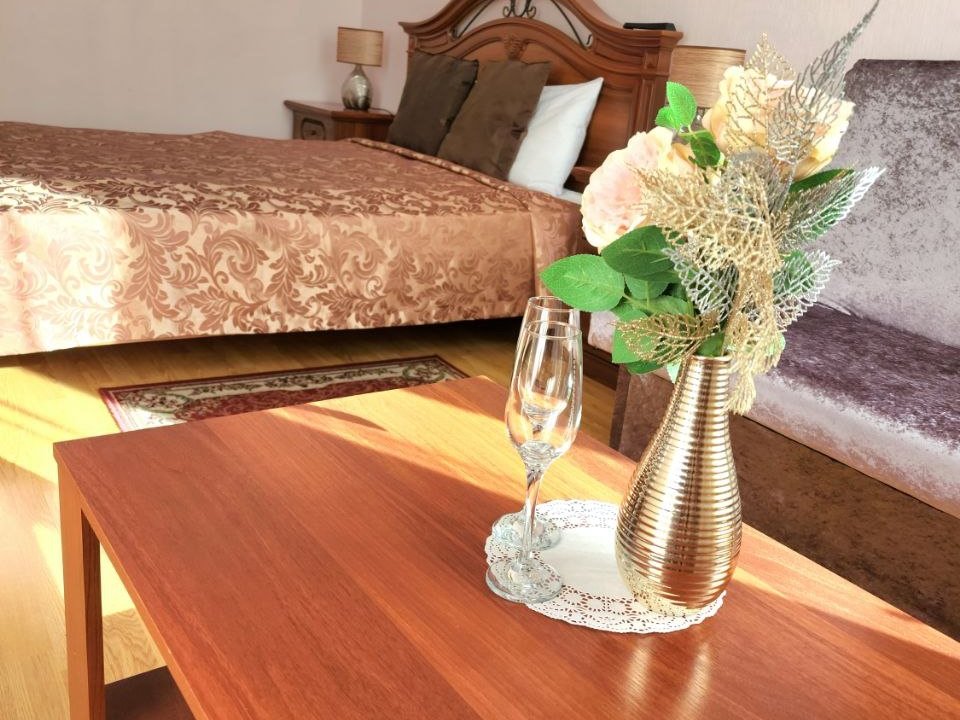 Просторный уютный номер. В номере есть все необходимое для комфортного проживания (большая двухспальная кровать,плазменный тв, холодильник, электрический чайник и посуда дляприготовления чая/кофе).В номере