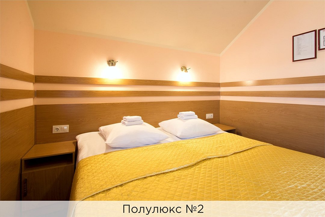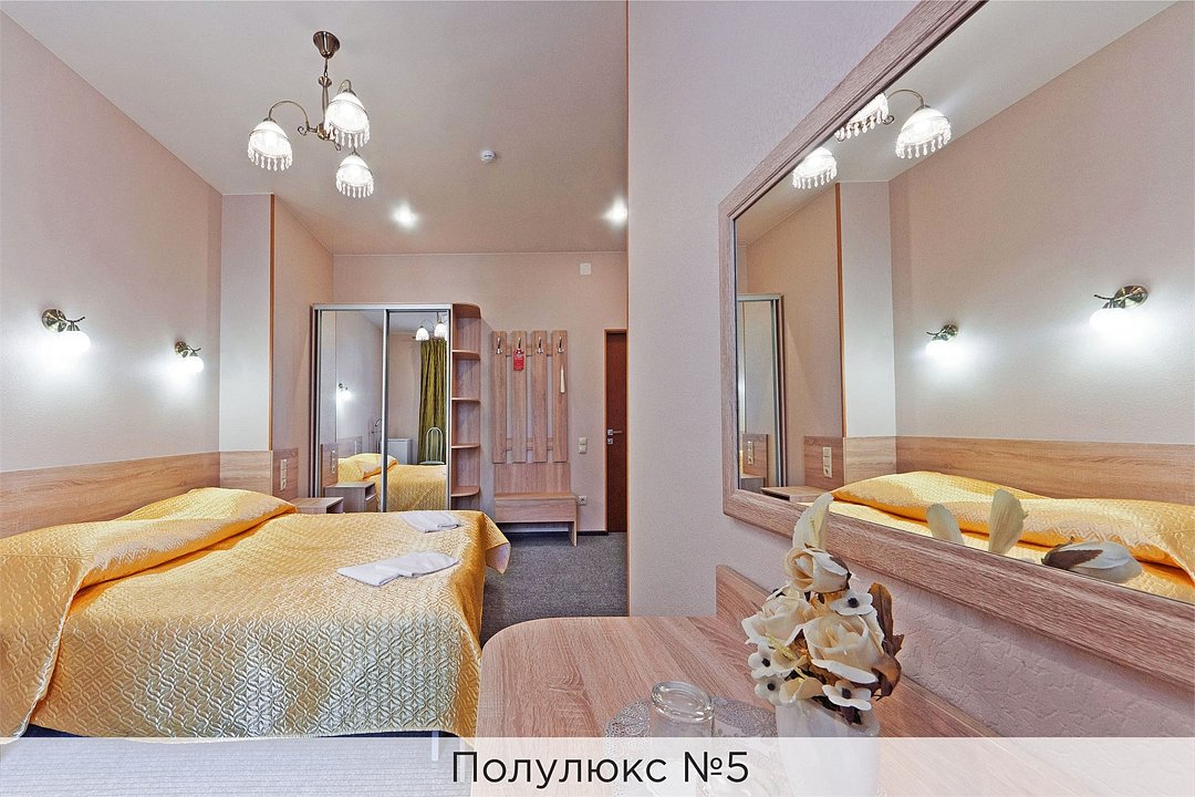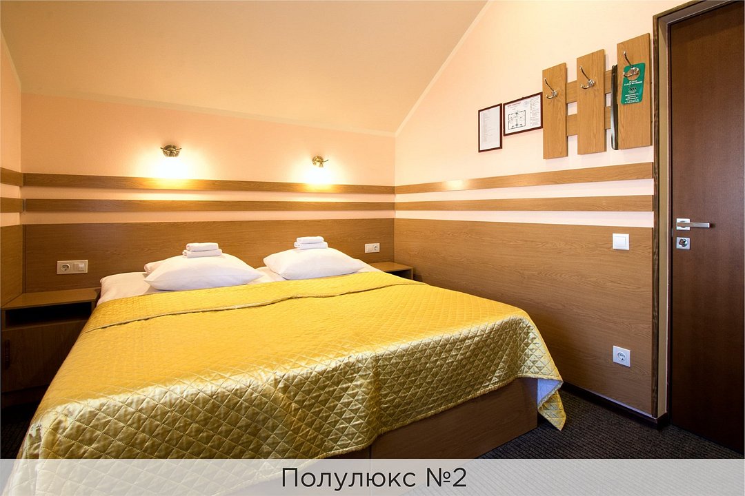 Просторный однокомнатный номер выполнен в теплых тонах. Номер состоит из спальной комнаты и совмещенного санузла. В стоимость проживания входит: - Завтрак (согласно выбранному тарифу). Стоимость завтрака - 700 руб/чел; - Посещение финской сауны с бассейном с 7:00 до 11:00; - Скидка 20% на беседку с мангалом; - Wi-Fi. Проживание с детьми до 5 лет - бесплатно. Аренда детской кроватки (от 0 до 5 лет) - 800 руб./сутки. Размещение взрослых и детей* (от 6 до 12 лет) на дополнительных местах оплачивается согласно прайсу в зависимости от категории выбранного номера. Информацию о стоимости необходимо уточнить у отеля. *Все детские кроватки и дополнительные кровати предоставляются за дополнительную плату (согласно прайсу отеля) при наличии возможности. При заселении в отель каждому гостю необходимо предъявить документ удостоверяющий личность (паспорт). Для детей до 14 лет необходимо предъявление свидетельства о рождении. Для заселения несовершеннолетних детей без родителей необходимо предъявить нотариально заверенную доверенность (для детей до 14 лет доверенность должна быть на сопровождающее лицо, для детей старше 14 лет доверенность может быть оформлена на ребенка). - С иностранных граждан взимается плата за услуги по оформлению документов для постановки на миграционный учёт в размере 300.00 RUB за весь период проживания с человека.Услуги и удобства