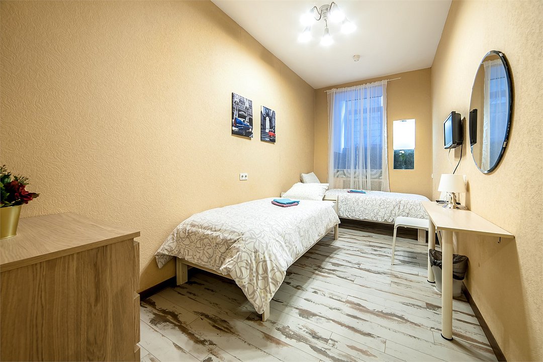 телевизор, Wi-Fi, две односпальные кровати, стулья, вешалки, комод, стиральная машина, общая ванная комната, вид во двор, ламинат, стол, туалетный столик, санузел на этаже, душ на этаже, фумигатор, услуги прачечной (платно), прачечная (за дополнительную плату), без питомцевВ номере