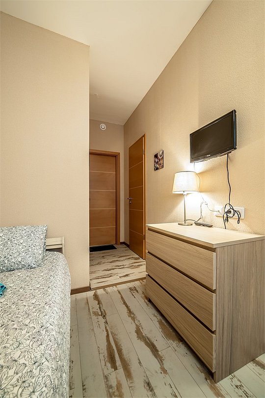 телевизор, Wi-Fi, холодильник, светильник, фен, микроволновая печь, утюг, ванная комната, водонагреватель, банные полотенца, тапочки, две односпальные или большая двуспальная кровать, вешалки, письменный стол, комод, чайник, раковина, отопление, душ, вид во двор, стул, туалетные средства, мини-холодильник, мини-кухня, фумигатор, услуги прачечной (платно), без питомцевВ номере