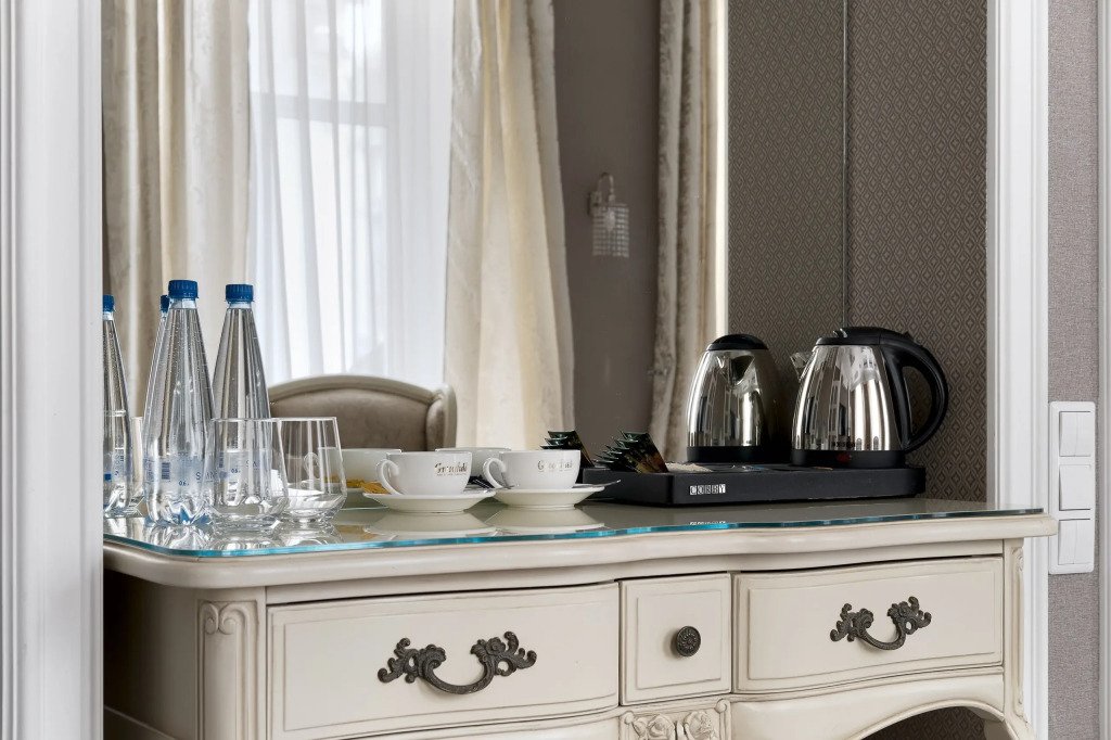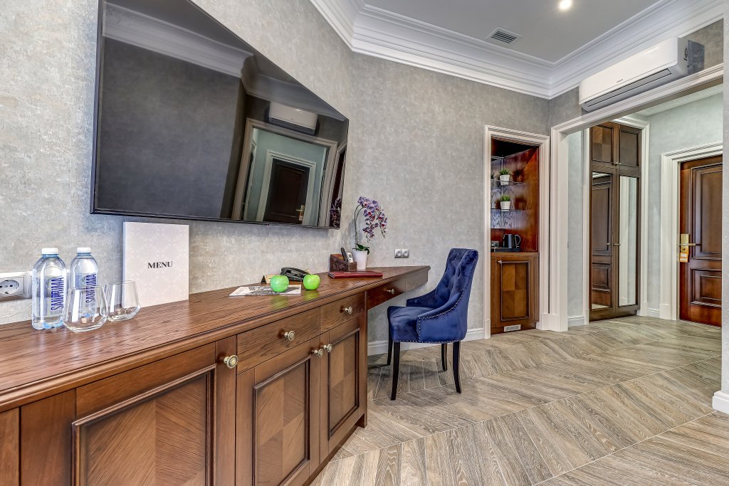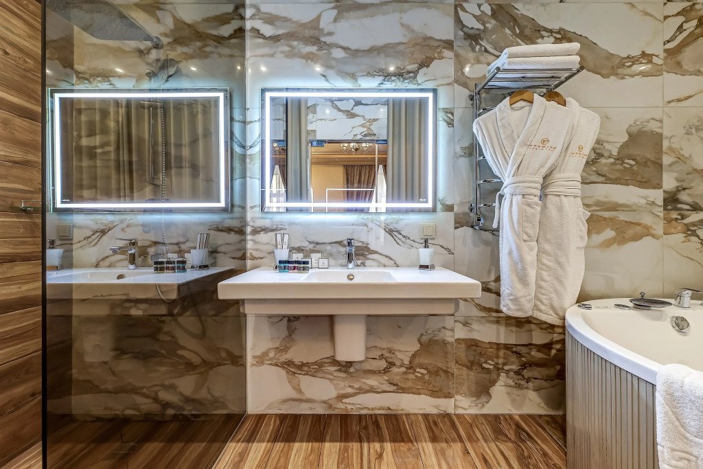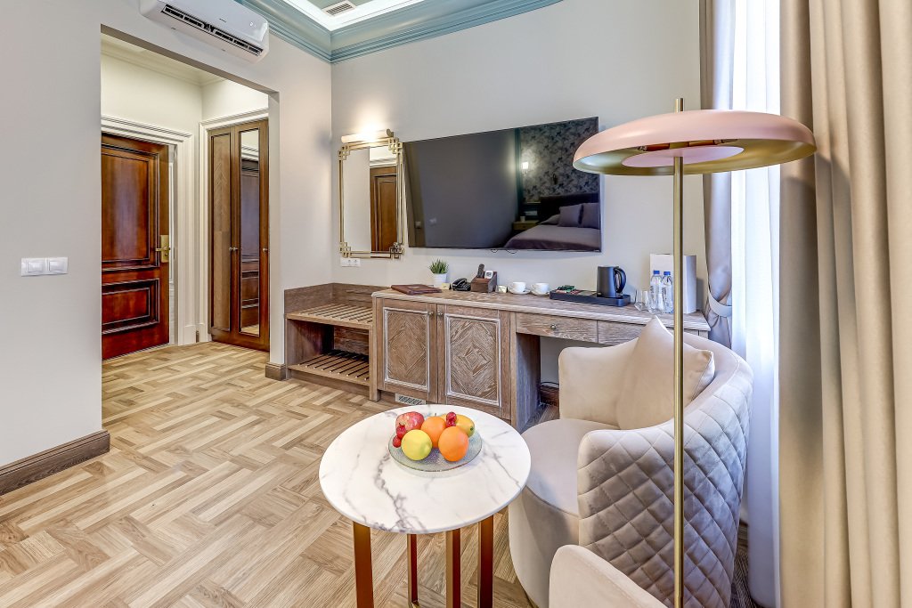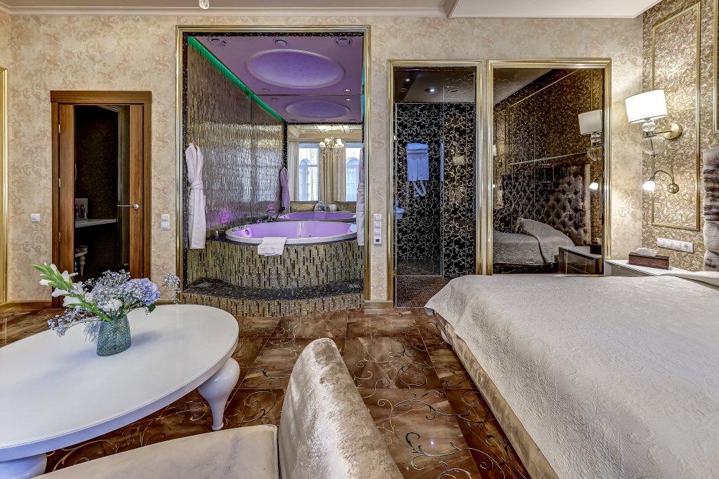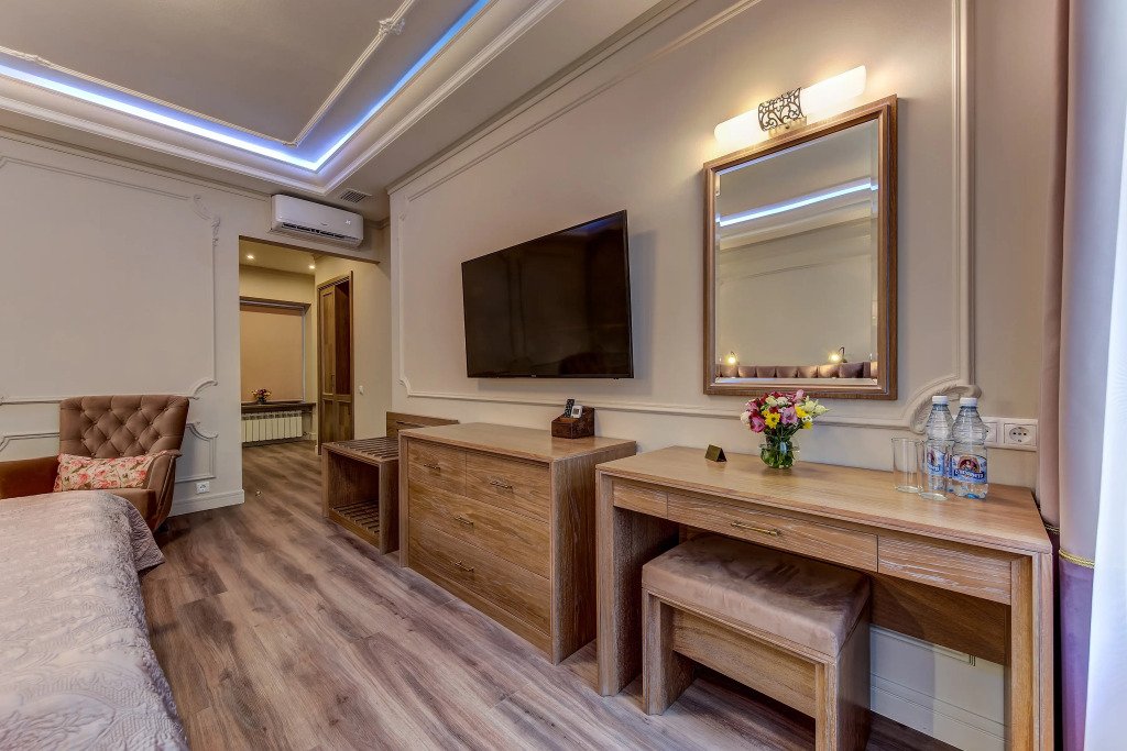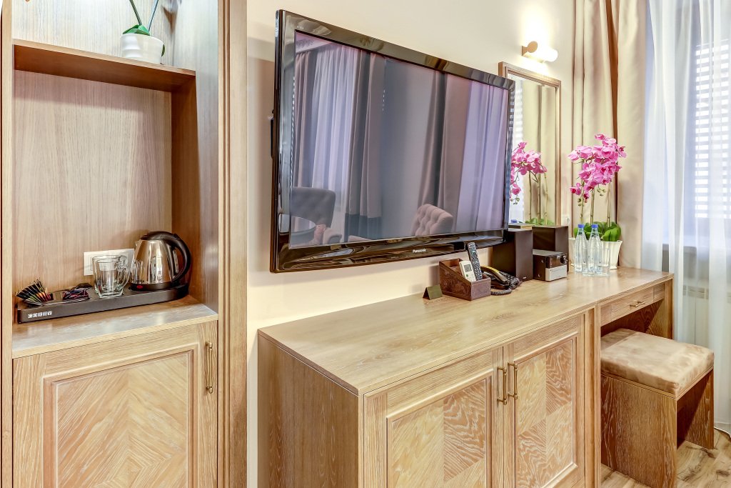 В номере имеются DVD-плеер, душ, телевизор, халат и тапочки. Оснащение зависит от выбранной категории номера.