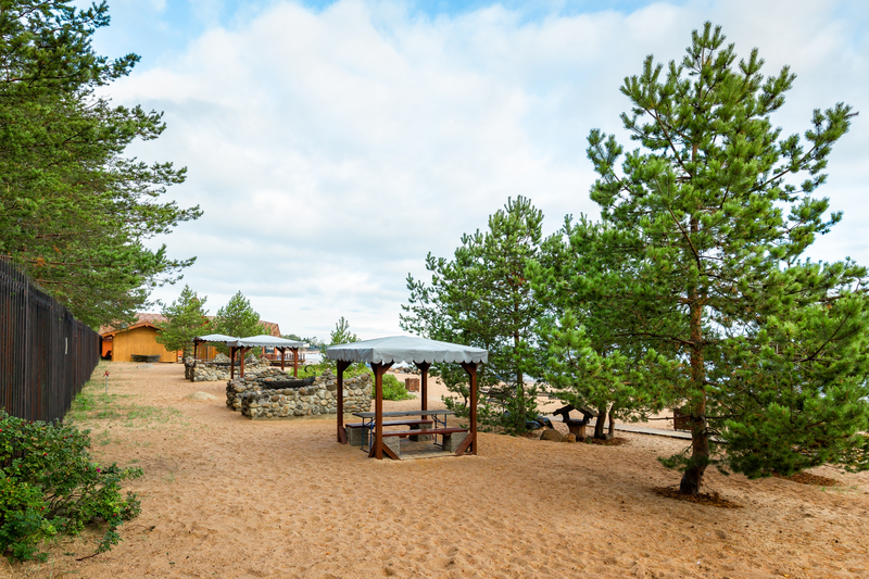 Беседка на пляже открытая (в беседке стол, скамейки, мангал):