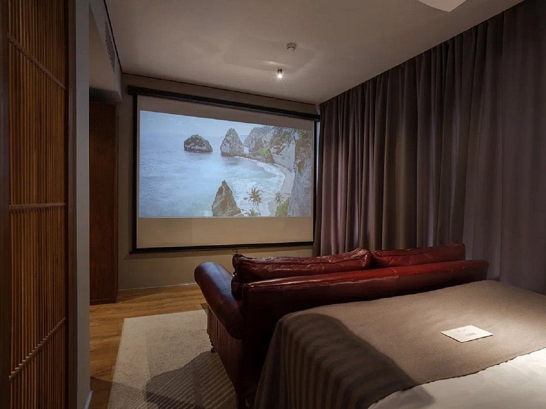 Наш номер категории “Полулюкс-кинотеатр” создан для настоящих киноманов и тех, кто ценит незабываемые впечатления. Насладитесь просмотром любимых фильмов и сериалов на большом экране, создав атмосферу настоящего кинотеатра прямо у себя в номере. Особенности: • Мягкая мебель в виде уютного дивана. • Проектор со смарт-ТВ. • Рабочее место (письменный стол).Услуги и удобства