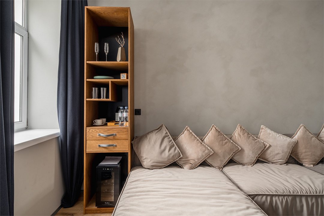 Просторный и стильный номер, созданный для вашего максимального удобства. Номера категории "Комфорт" отличаются улучшенной планировкой и наличием рабочего места в виде письменного стола. Здесь вы найдете все необходимое для работы и отдыха, а также сможете насладиться атмосферой уюта и спокойствия. Номера в рамках одной категории могут различаться по планировке и дизайну.Услуги и удобства