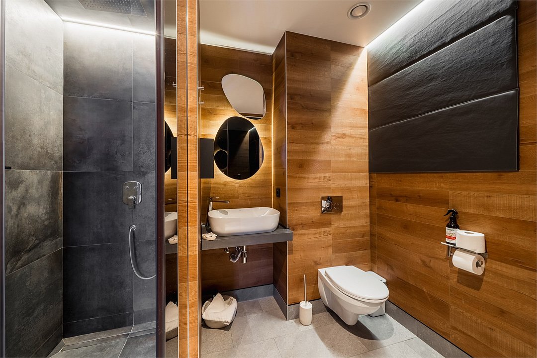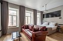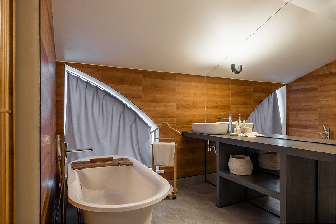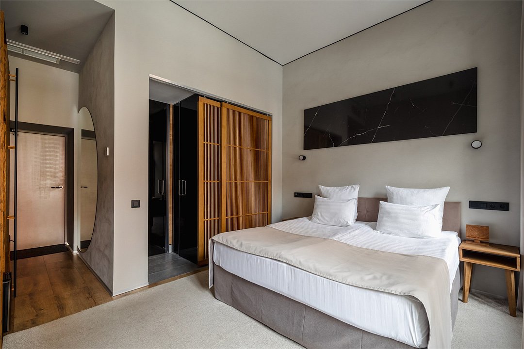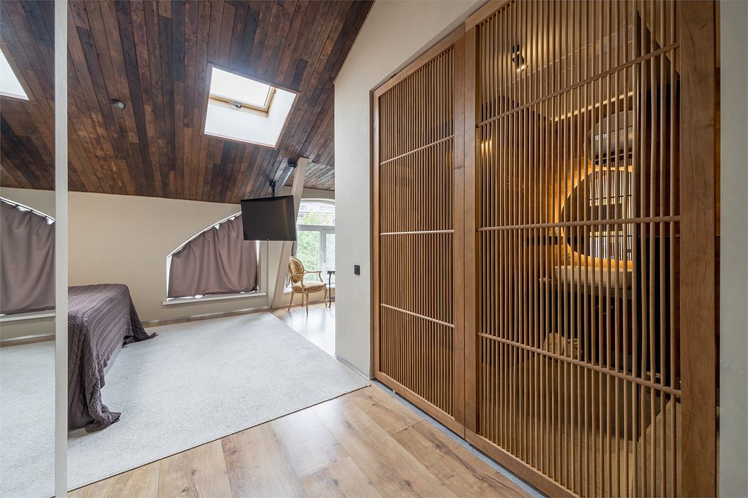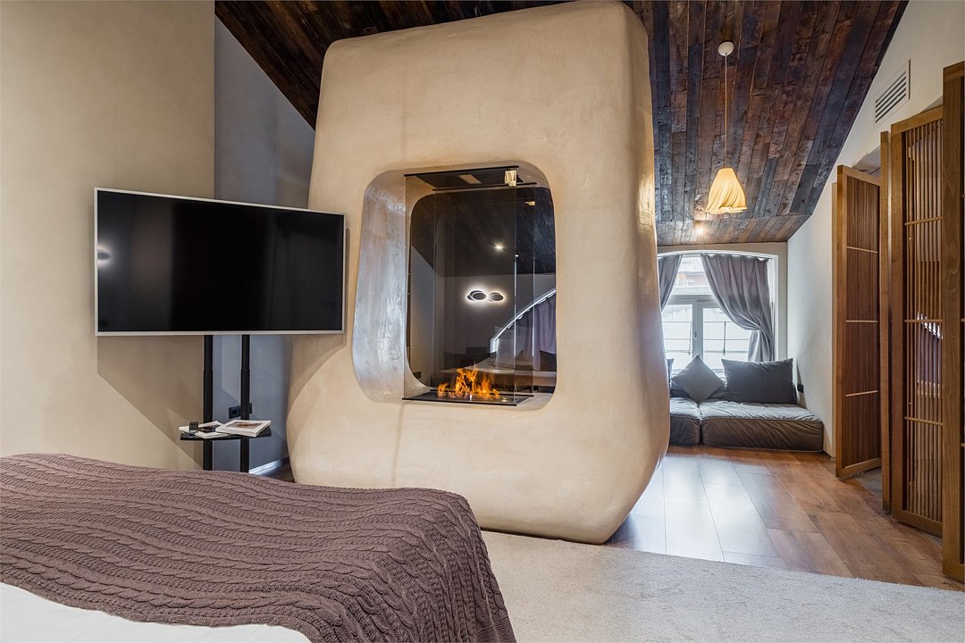 Wi-Fi, интернет, телефон, система климат-контроля, фен, электронные замки, утюг, ванна, санузел, теплый пол, банные принадлежности, халаты, банные полотенца, тапочки, гигиенические средства, косметические средства, две двуспальные кровати, гладильная доска, стулья, шкаф для одежды, гардеробная, вешалки, журнальный столик, письменный стол, зеркало, ковер, письменные принадлежности, обслуживание номеров, сейф, унитаз, душ, вид на город, плиточное покрытие, две спальни, вид во двор, высокие потолки, стаканы, стол, туалетные средства, туалет, сплит-система, мини-холодильник, мансардные окна, телевизор со Smart TV, номер для некурящих, чайная станция, умная колонка, бутилированная вода, мыло, без питомцевВ гостиничном номере