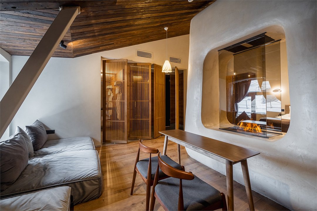 Окунитесь в атмосферу тепла и романтики в наших номерах “Люкс с камином”. Этот роскошный номер, сочетающий в себе все преимущества категории "Люкс" и уют живого огня, станет идеальным местом для незабываемого отдыха. Насладитесь волшебной атмосферой у камина, расслабьтесь и забудьте о повседневной суете. Особенности: • Возможность провести незабываемый вечер у эко-камина. • Удобные кресла или диван возле эко-камина. • Удобное зонирование на гостиную и спальную комнаты.Услуги и удобства