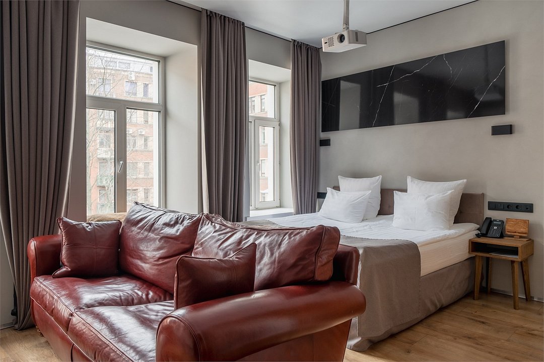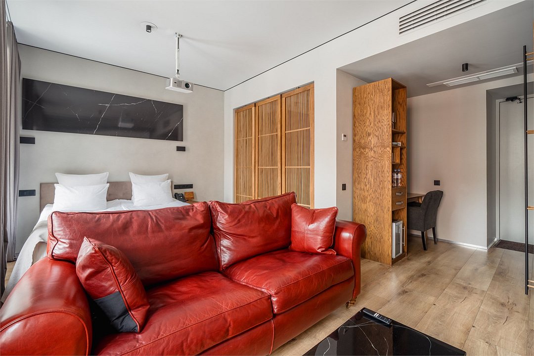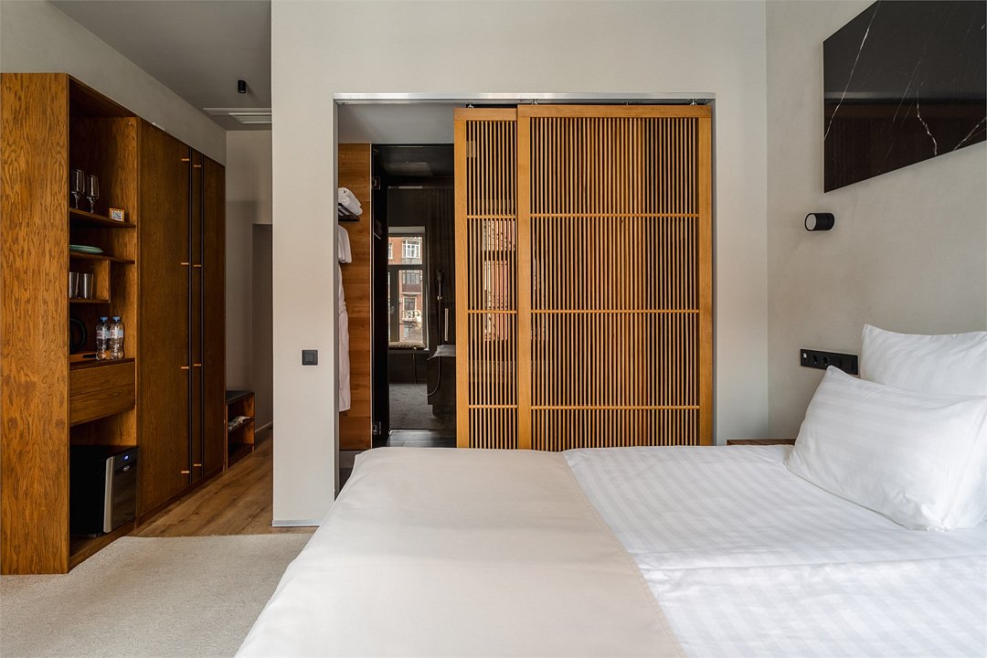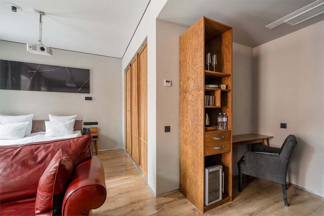 Wi-Fi, интернет, телефон, фен, электронные замки, утюг, ванна, санузел, теплый пол, банные принадлежности, халаты, банные полотенца, тапочки, двуспальная кровать, гладильная доска, диван, шкаф для одежды, вешалки, журнальный столик, письменный стол, зеркало, ковер, звуконепроницаемые стены и окна, письменные принадлежности, обслуживание номеров, сейф, унитаз, раковина, отопление, душ, вид на город, центральное кондиционирование, высокие потолки, стаканы, стол, туалетные средства, туалет, сплит-система, мини-холодильник, номер для некурящих, проектор, чайная станция, уборка номера, бутилированная вода, мыло, затемняющая штора, без питомцевВ гостиничном номере
