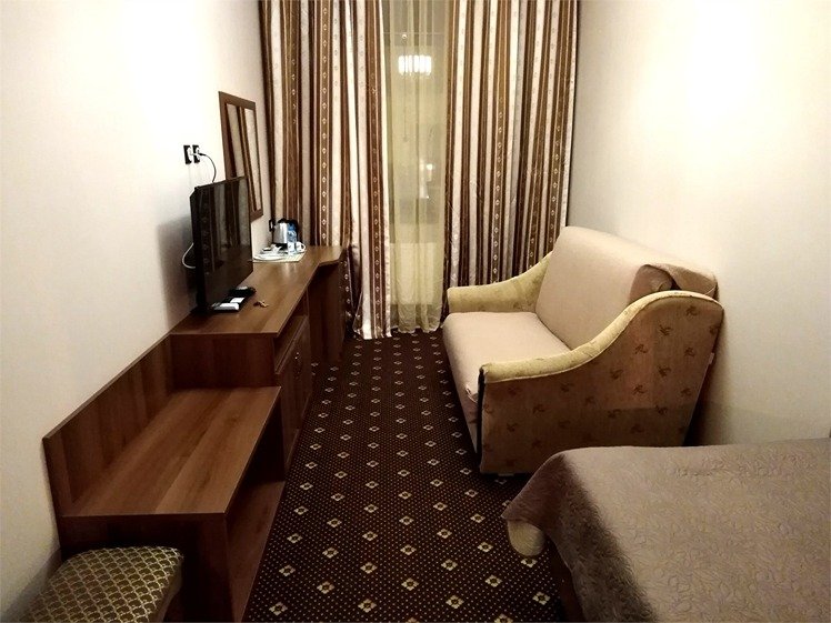 Односпальная кровать: 90*200см, ванная комната с душем,чайник, холодильник, кондиционер.