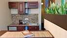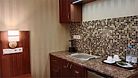 двуспальная кровать: 180*200см, ванная комната с душем, балкон, кухонный гарнитур, обеденная зона, барная стойка,вид на город