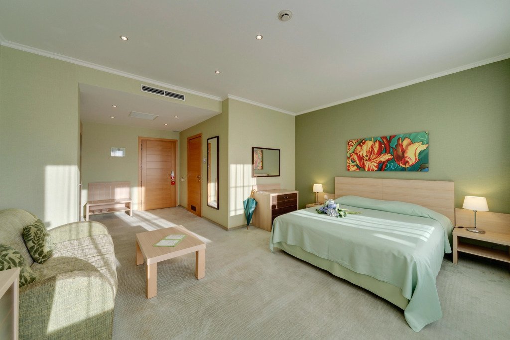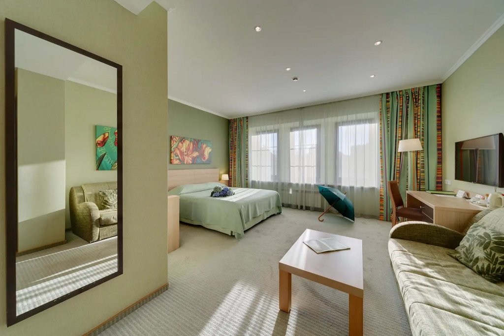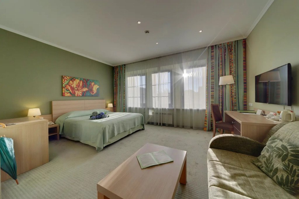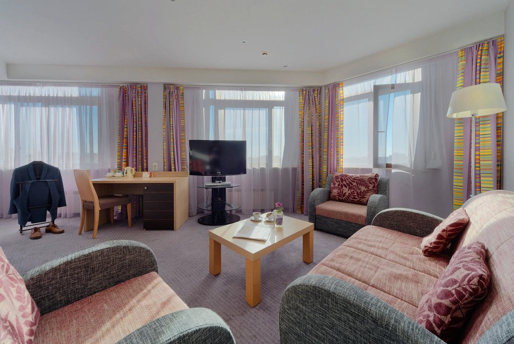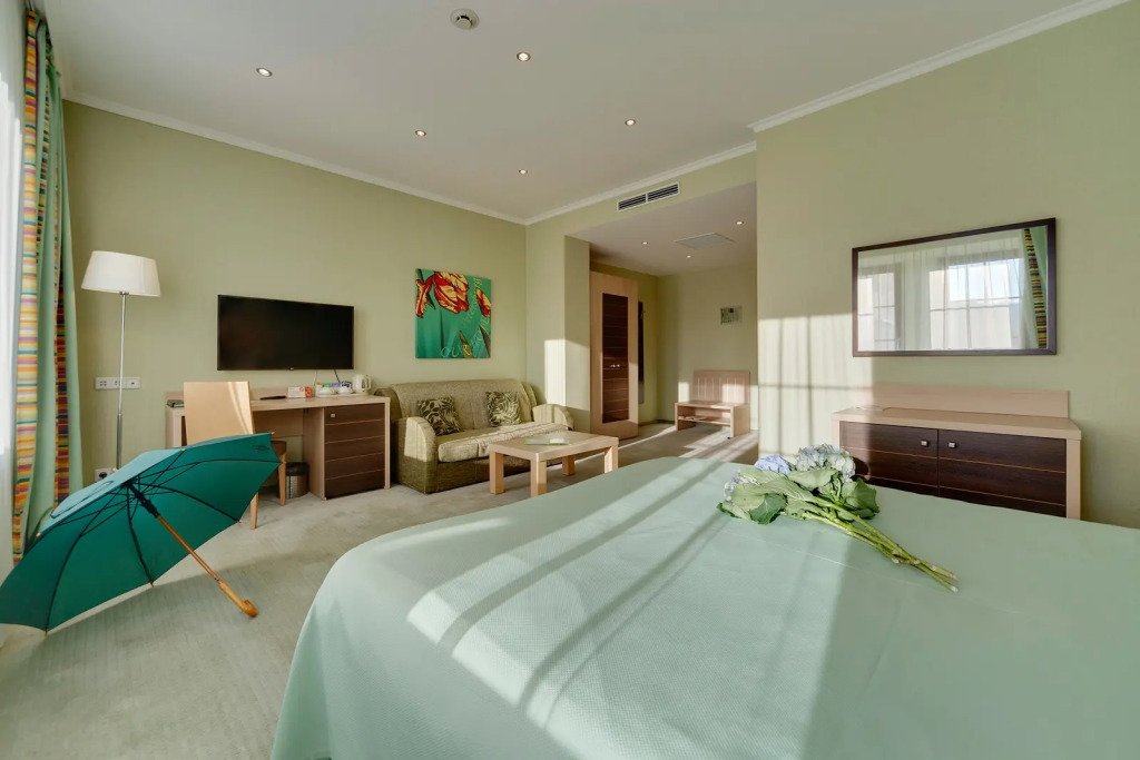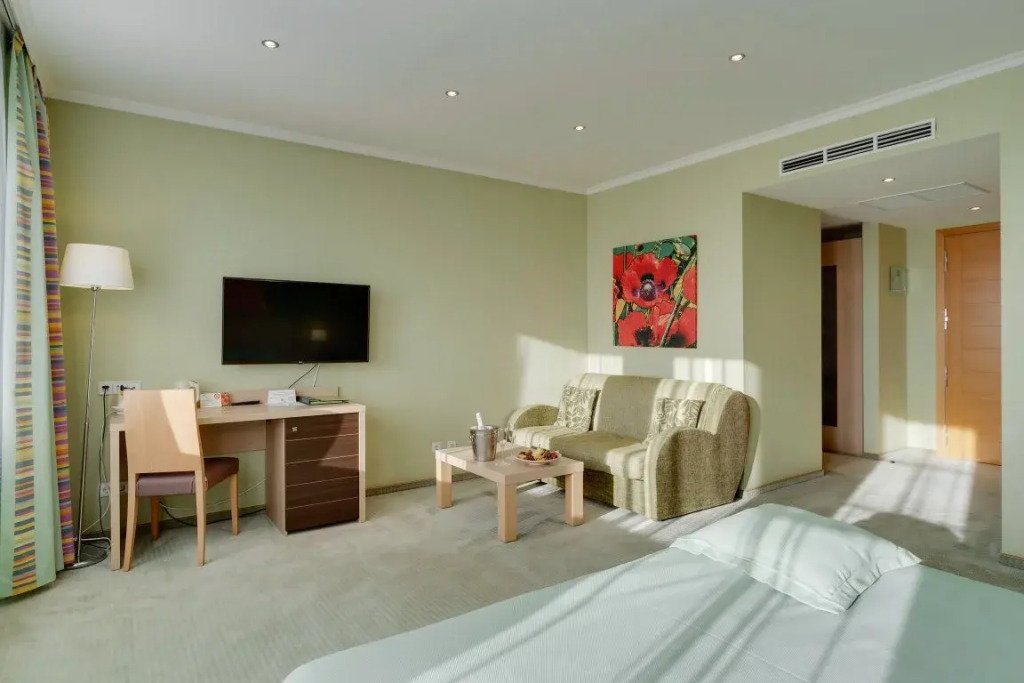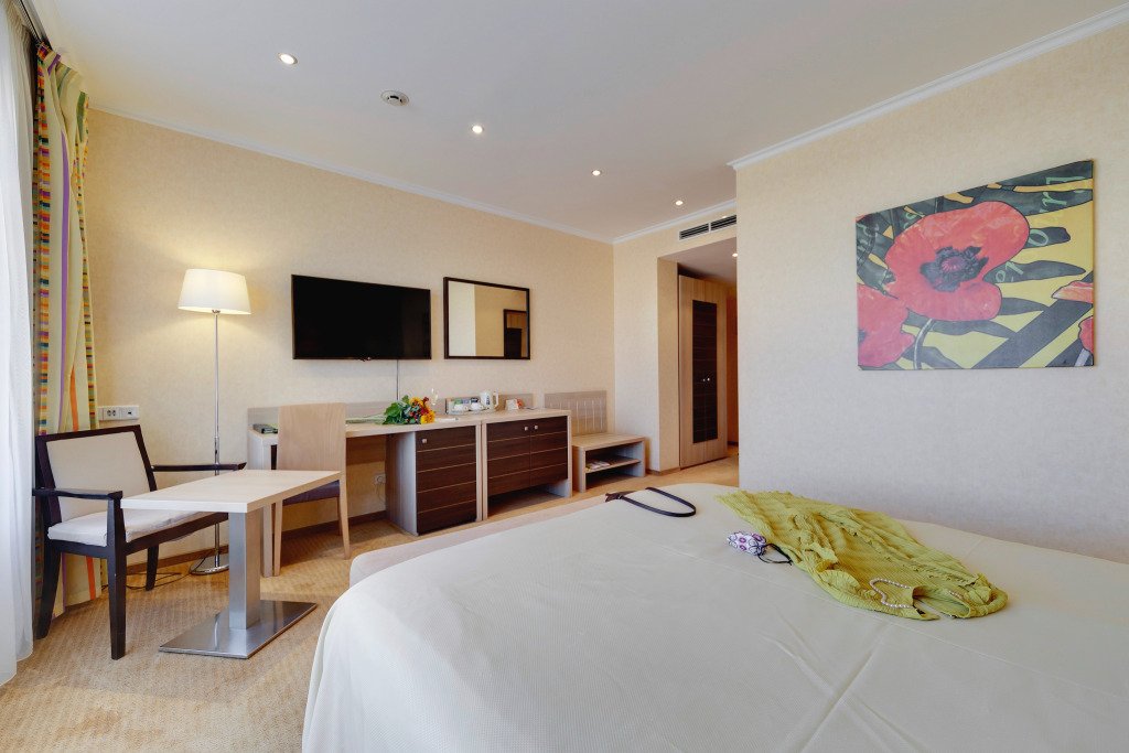 Чтобы вы могли отдохнуть после долгого дня, в номере есть телевизор и мини-бар. Оснащение зависит от выбранной категории номера.