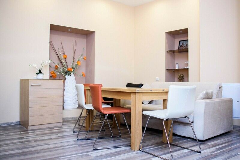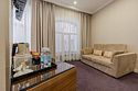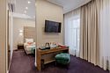 Просторное помещение с современным дизайном и уютной обстановкой. В номере есть несколько комнат: отдельная спальня с собственной гардеробной, оснащенная всем необходимым кухня, гостиная с собственным электрическим камином, большая прихожая. Идеальная и просторная атмосфера для отдыха. Номер располагается на 5 этаже, лифта нет. Услуга подноса багажа бесплатно.