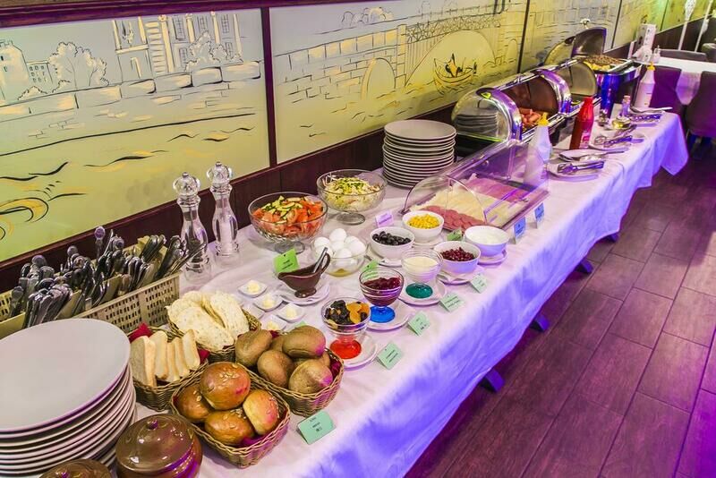 Каждое утро в отеле сервируется континентальный завтрак. Для детей до 6-летнего возраста питание осуществляется бесплатно. Для гостей на каждом этаже установлены кулеры с очищенной водой, отведены помещения для курящих. В номерах отеля доступен беспроводной интернет Wi-Fi. Для удобства отдыхающих предусмотрена услуга проката утюга.