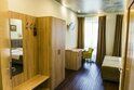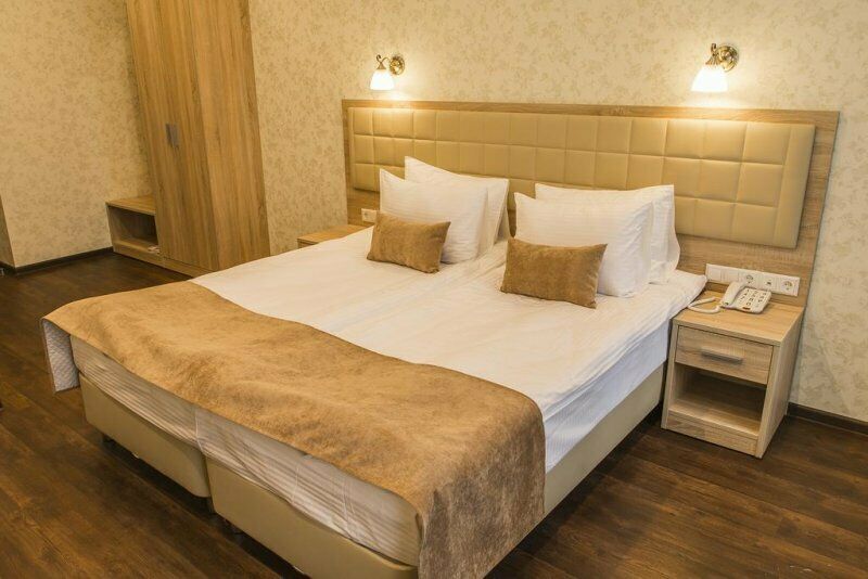 Путешествие с семьейОтель на 5-ку!Потрясающий отель, достойный пяти звёзд! Мы были втроём,снимали люкс с сауной. Уборка каждый день. Просторный номер с удобными кроватями и чистой сауной. В сауне различные венички трав. Кофемашина в номере. Личные принадлежности в полном объеме: бритвенный набор, зубные щётки,косметика и косметические наборы,халаты,тапочки. Обслуживание ненавязчивое и на высшем уровне: с каким бы запросом вы не подошли вам помогут доброжелательные девушки на ресепшне. Экскурсии мы бронировали тоже там поздно вечером- все прекрасно организовали. Завтраки в соседнем здании через дорогу и аж до 11 утра. Расположение- центр. Рядом вокзал,метро, ТЦ,куча кафешек, ресторанчиков и пекарен.Обязательно вернёмся ещё!