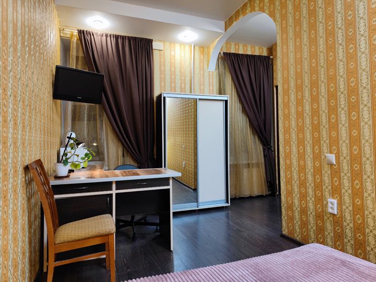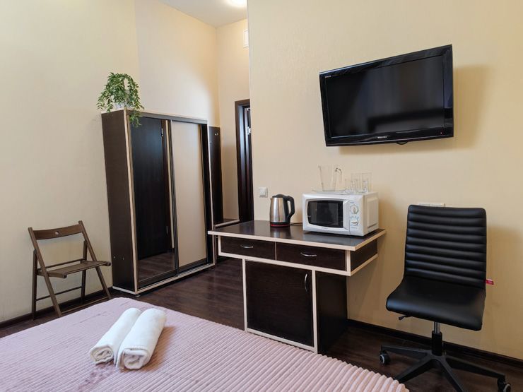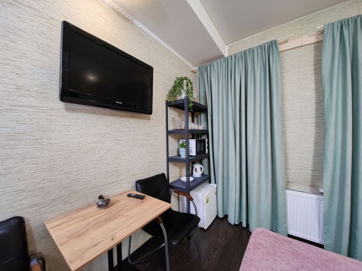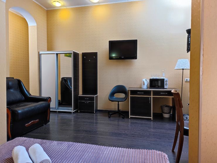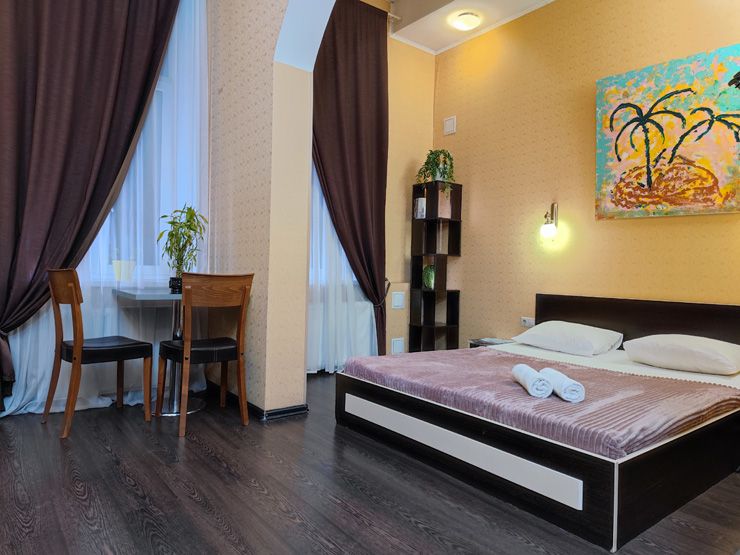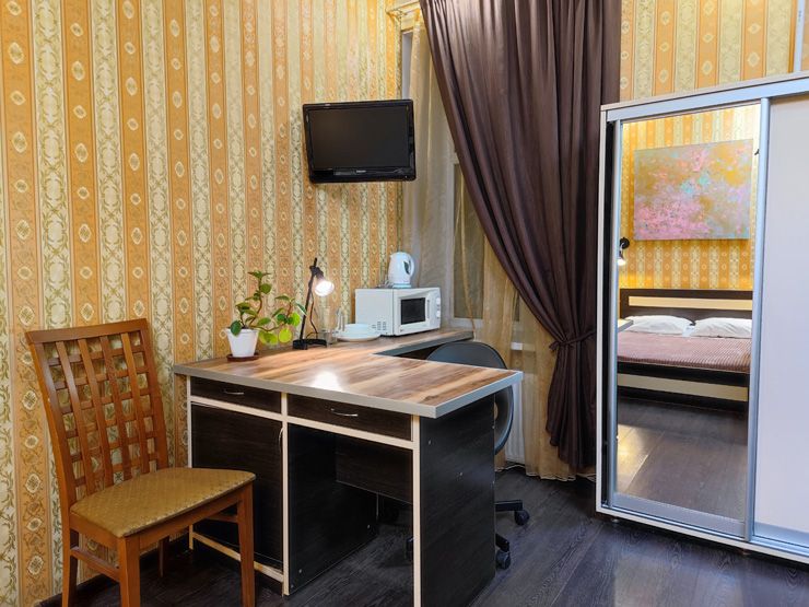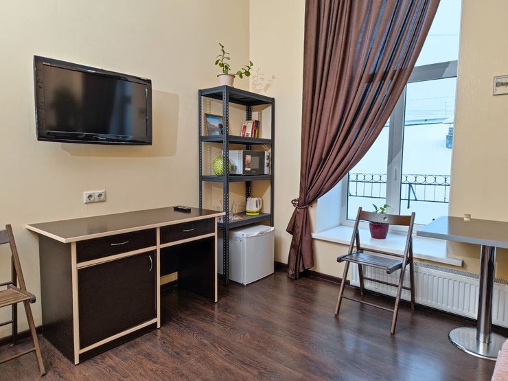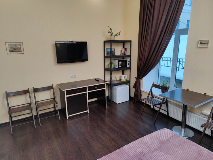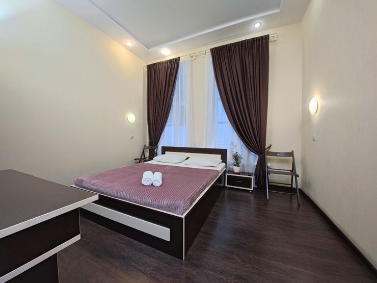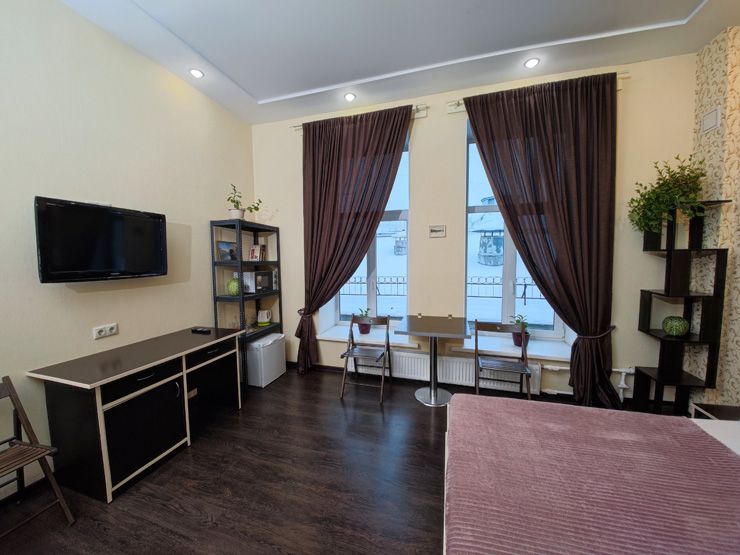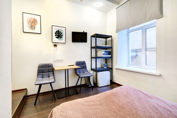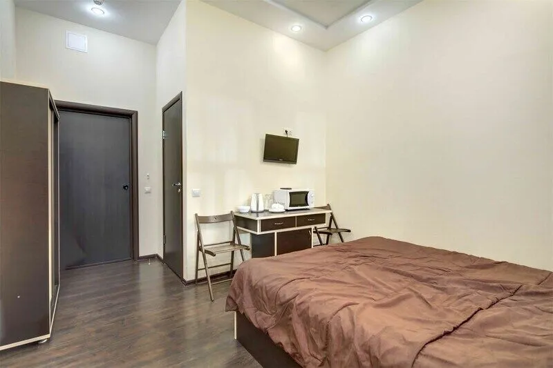 Апартаменты с двуспальной кроватью, собственной ванной комнатой с душем, туалетом и раковиной. При необходимости в качестве дополнительного места предоставляется раскладушка. В наличии: микроволновая печь, в которой можно приготовить или разогреть обед, холодильник, электрический чайник и столовые приборы. Дополнительное удобство: рабочий стол. Рядом с апартаментами вы сможете поужинать в понравившемся кафе, сходить в кино или пройтись по вечерней набережной Невы и насладиться красотой достопримечательностей этого романтичного города. Такой отдых оставит незабываемые впечатления и яркие воспоминания от пребывания в центре Петербурга. По запросу предоставляется дополнительное спальное место (услуга платная, предоставляется при наличии).Услуги и удобства