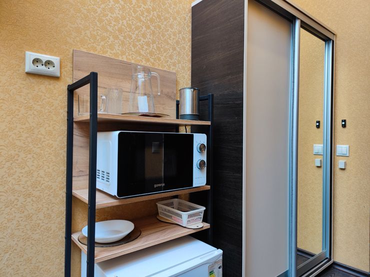 Апартаменты с двумя раздельными кроватями, собственной ванной комнатой с душем, туалетом и раковиной. В наличии: микроволновая печь, в которой можно приготовить или разогреть обед, холодильник, электрический чайник и столовые приборы. Дополнительное удобство: рабочий стол. Рядом с апартаментами вы сможете поужинать в понравившемся кафе, сходить в кино или пройтись по вечерней набережной Невы и насладиться красотой достопримечательностей этого романтичного города. Такой отдых оставит незабываемые впечатления и яркие воспоминания от пребывания в центре Петербурга.Услуги и удобства