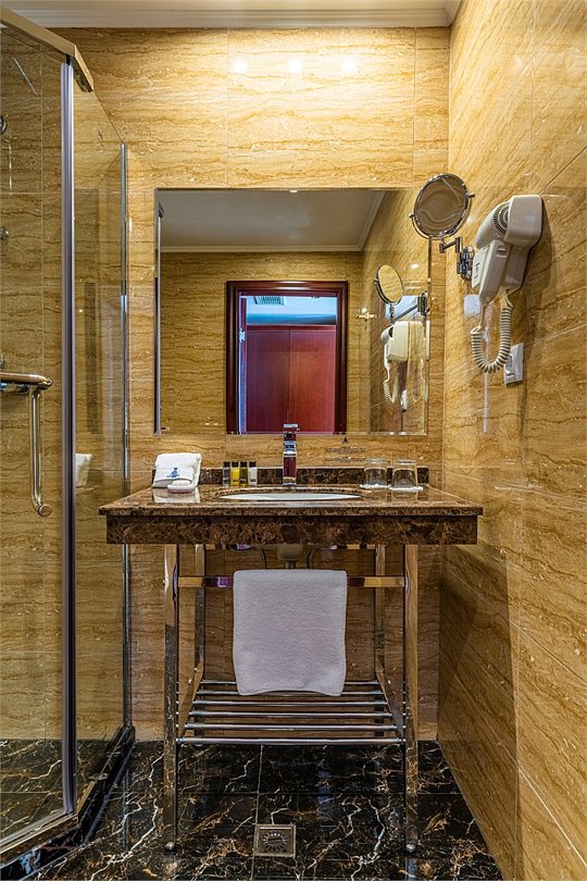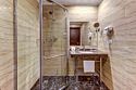 телевизор, спутниковое телевидение, Wi-Fi, телефон, светильник, фен, электронные замки, душевая кабина, санузел, халаты, тапочки, гигиенические средства, косметические средства, кровать «King size», две односпальные кровати, тумбы, шкаф для одежды, вешалки, журнальный столик, сейф, унитаз, раковина, косметическое зеркало, ковровое покрытие, отопление, душ, высокие потолки, стаканы, тумба, туалетные средства, туалет, телевизор с плоским экраном, телевизор со Smart TV, номер для некурящих, уборка номера, бутилированная вода, мини-бар (платно), мыло, затемняющая штора, прачечная (за дополнительную плату), без вида, без питомцевВ гостиничном номере