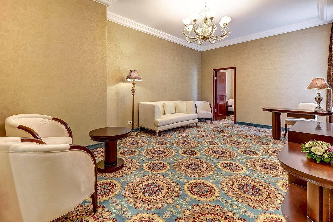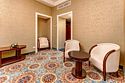 спутниковое телевидение, Wi-Fi, телефон, светильник, фен, электронные замки, ванная комната, гидромассажная ванна, теплый пол, халаты, банные полотенца, тапочки, гигиенические средства, косметические средства, двуспальная кровать, диван, тумбы, стулья, шкаф для одежды, вешалки, журнальный столик, письменный стол, зеркало, сейф, унитаз, раковина, косметическое зеркало, гостиная зона, ковровое покрытие, отопление, кресло, высокие потолки, стаканы, стул, туалетные средства, туалет, внутренний телефон, телевизор с плоским экраном, телевизор со Smart TV, номер для некурящих, мини-бар (платно), без вида, без питомцевВ гостиничном номере