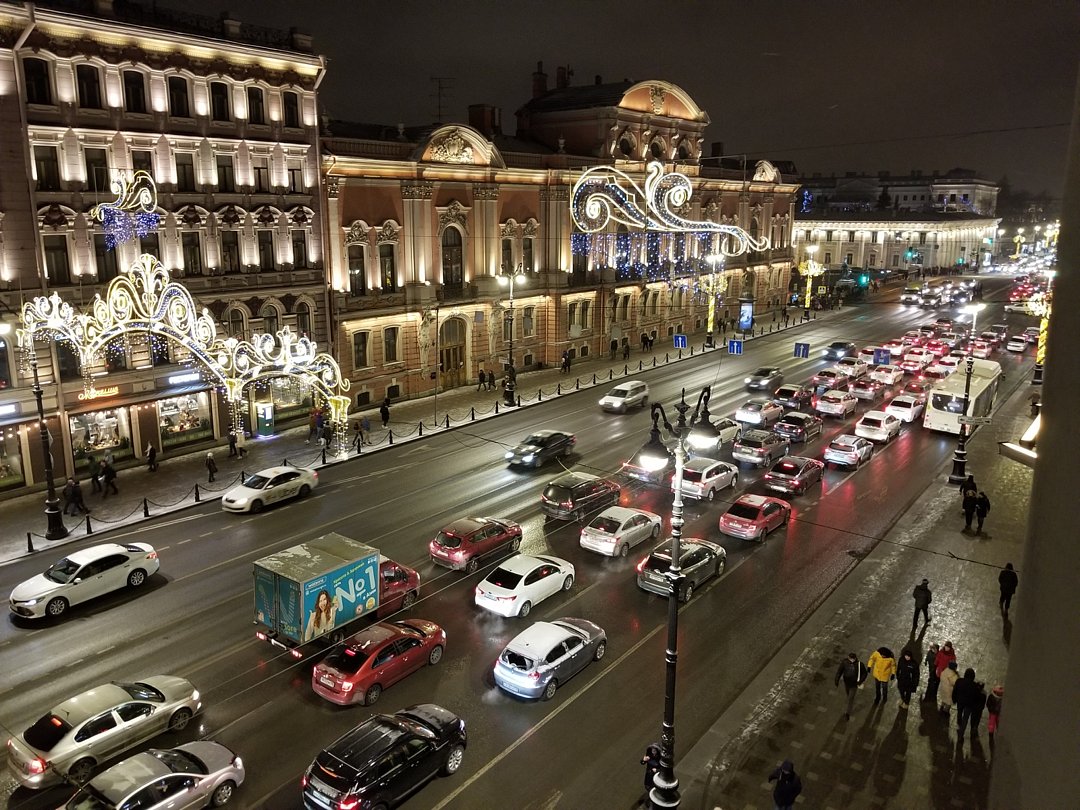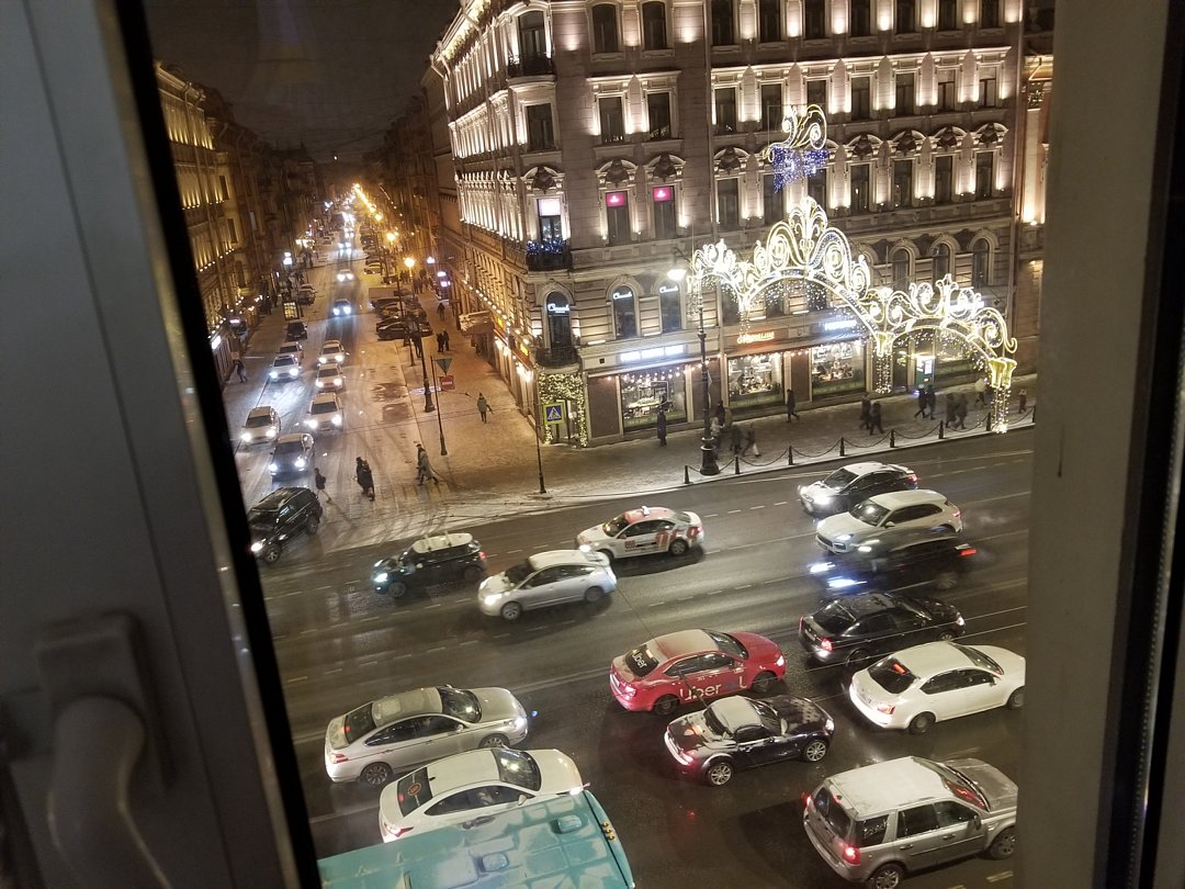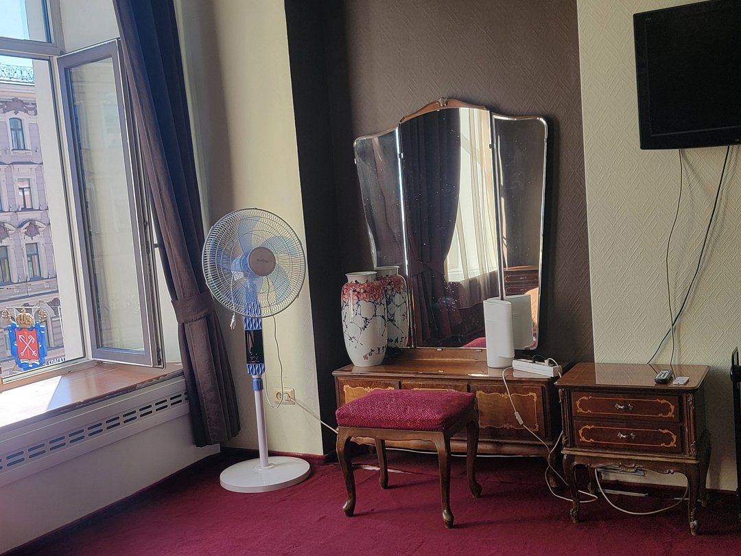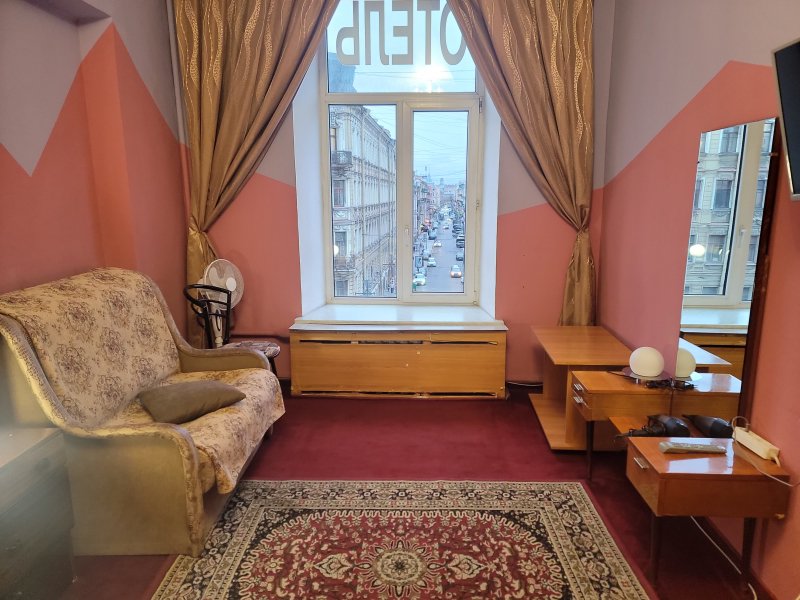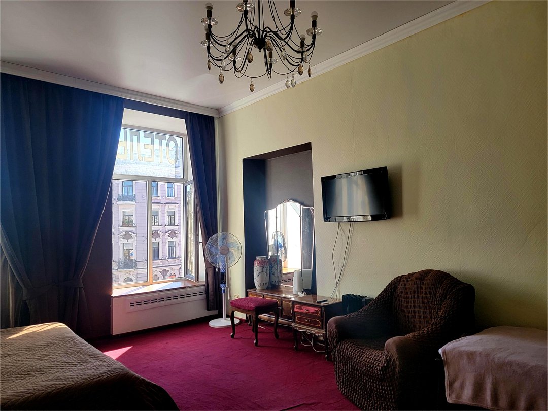 Большой номер, где может разместиться 4-5 человек. 2 окна выходят на Невский проспект.В номере