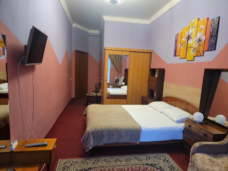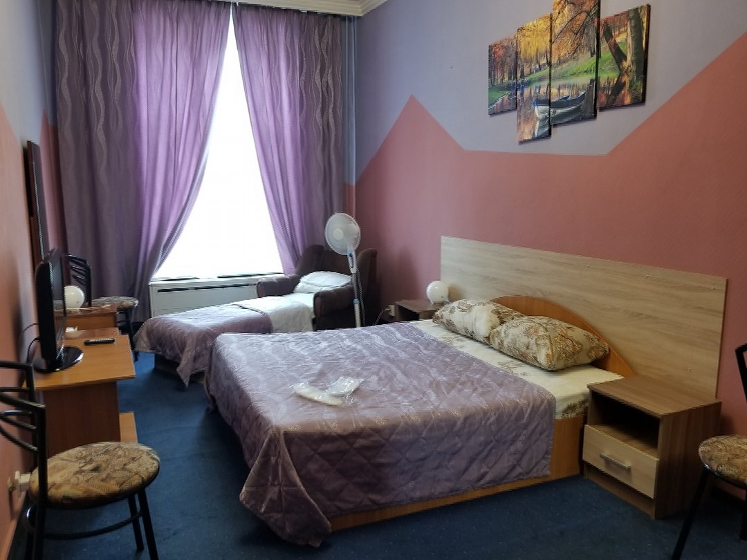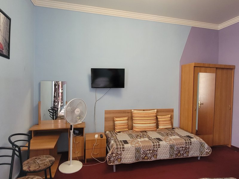 Двухместный номер с двуспальной кроватью и кресло-кроватью. Окно выходит в тихий двор.В номере