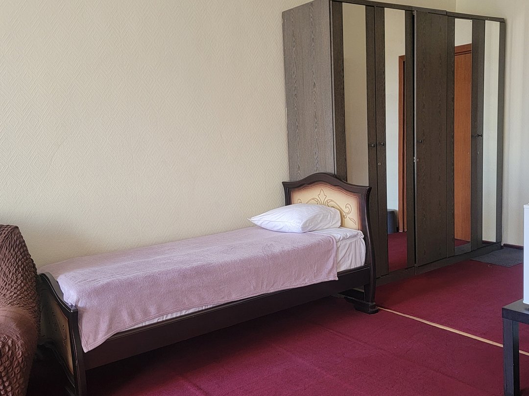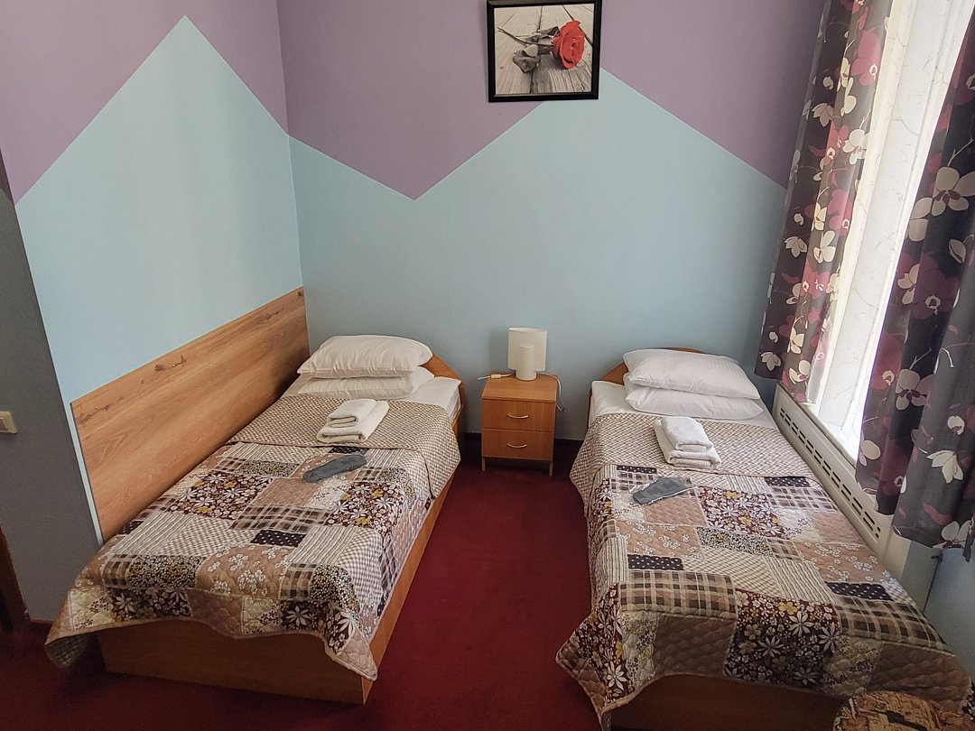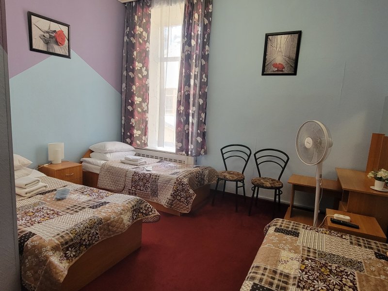 Номер с тремя отдельными кроватями и с собственной ванной комнатой. Окно выходит в тихий двор.В номере