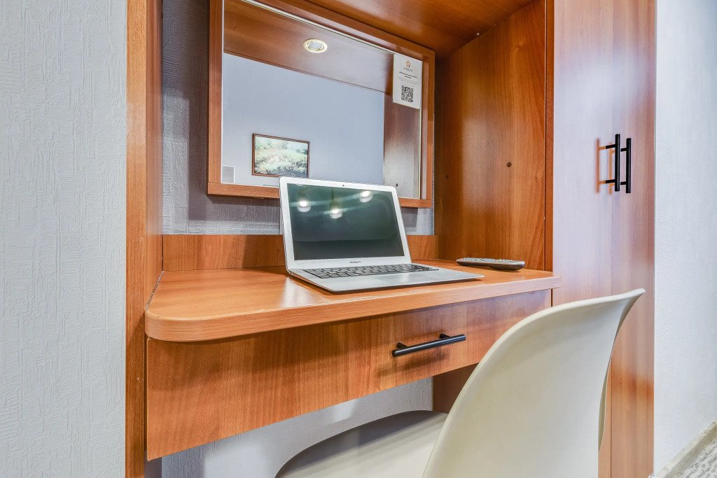 В номере вы найдёте телевизор. Оснащение зависит от выбранной категории номера.