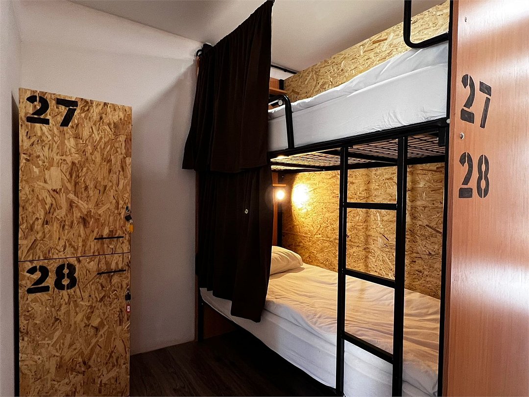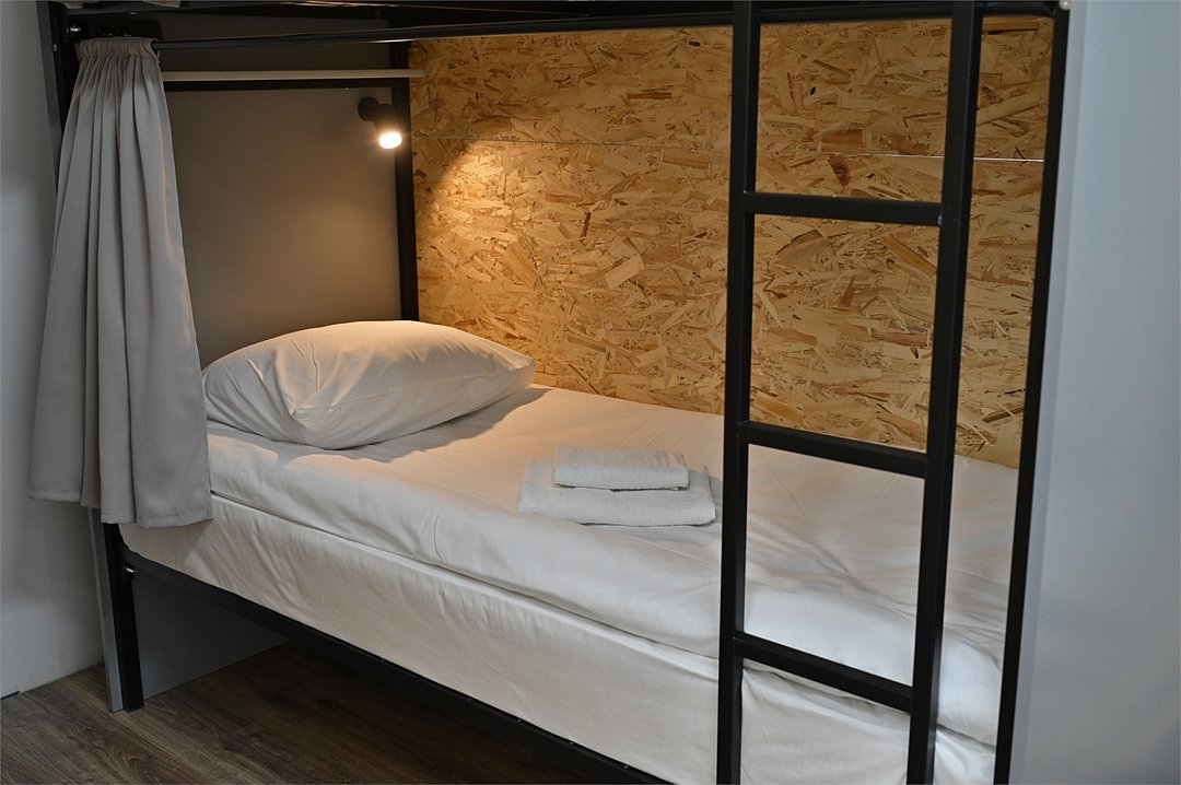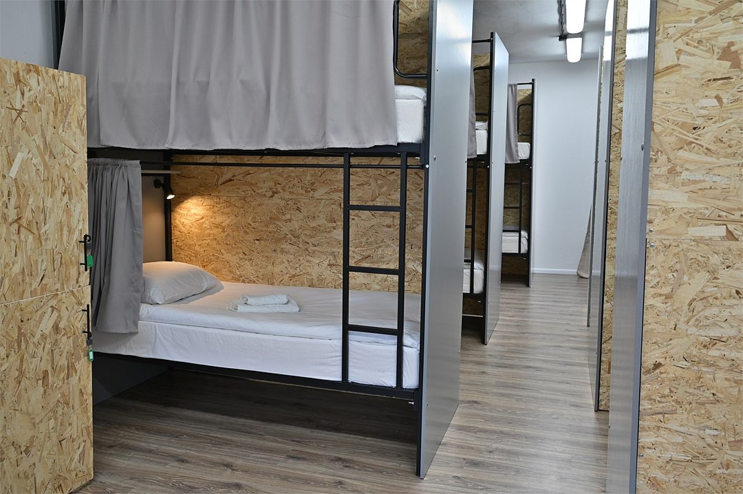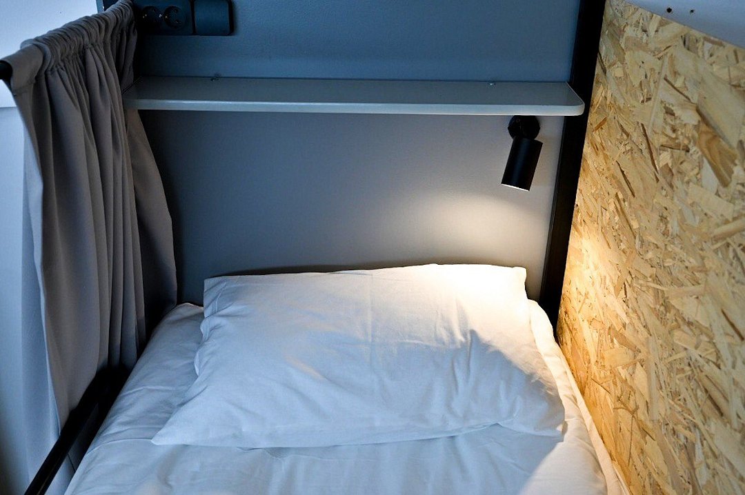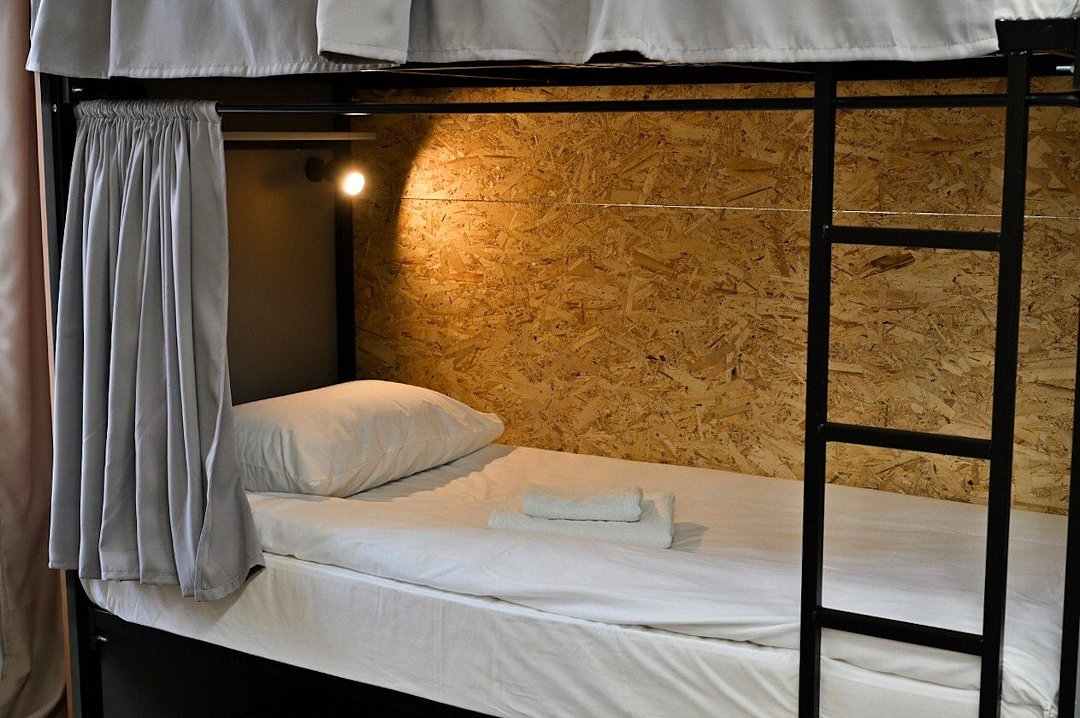 Общий смешанный номер для мужчин и женщин. Общее число спальных мест в комнате 12. Нижнее место оснащено: светильником, розеткой, полочкой для личных вещей, комплектом постельного белья, а также полотенец, личный шкафчик с замкомУслуги и удобства