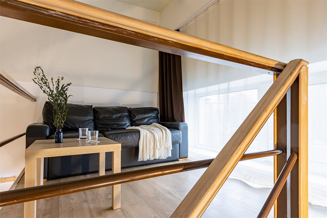 Дуплекс номера отеля комфортабельные и двухэтажные.Номера оборудованы одной большой двухспальной кроватью.Все номера выполнены в соответствии с современными европейскими тенденциями и оформлены в авторском стиле.В каждом номере есть ванная комната.Номера выполнены в спокойных тонах.Площадь составляет 20 - 22 кв.м. Номера располагают рабочим местом со столом и стулом. Дополнительное спальное место, диван на втором уровне.Услуги и удобства