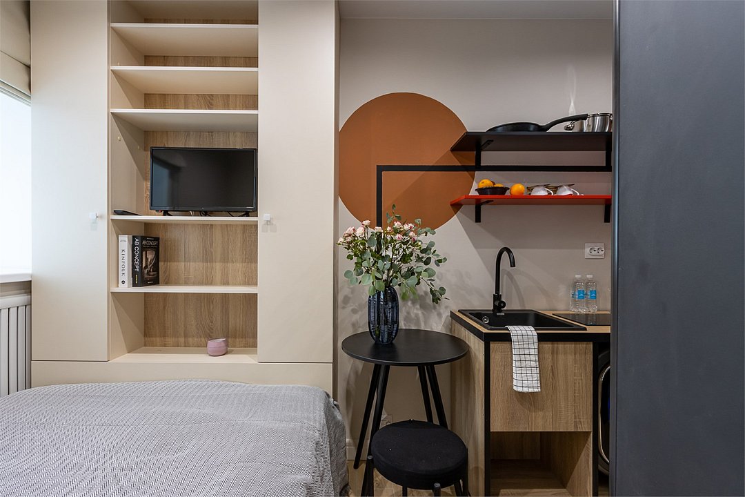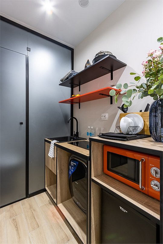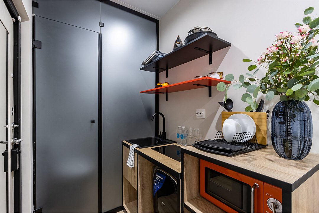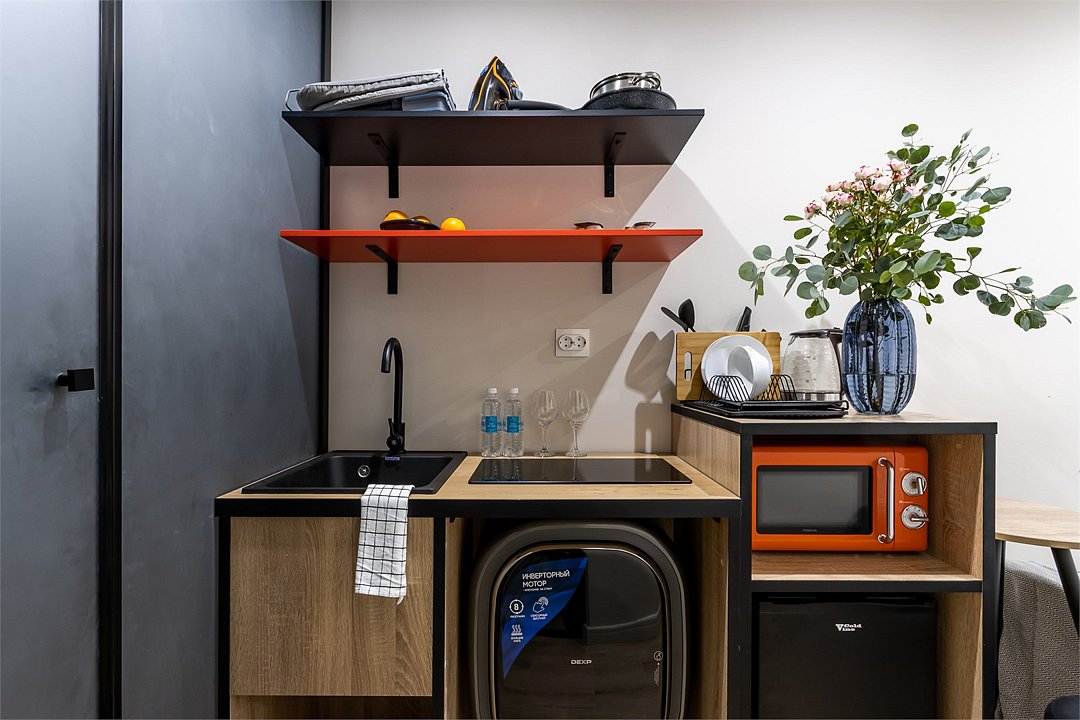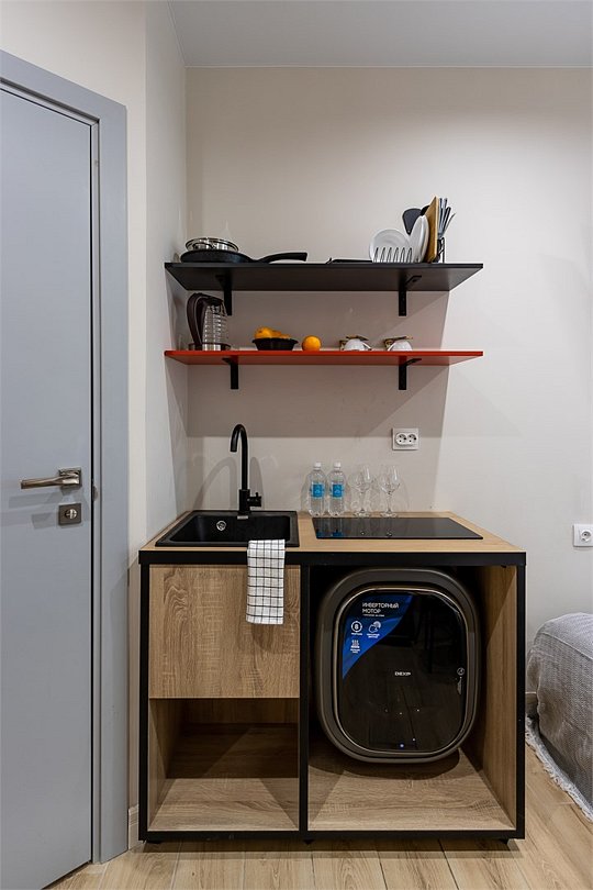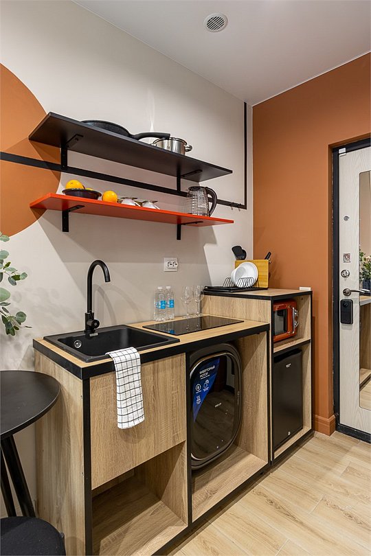 телевизор, Wi-Fi, холодильник, фен, плита для приготовления пищи, микроволновая печь, утюг, душевая кабина, односпальная кровать, шкаф для одежды, журнальный столик, набор посуды, стиральная машина, чайник, унитаз, душ, вид во двор, кухонная утварь, стол, туалет, мини-кухня, мыло, можно с питомцамиВ номере