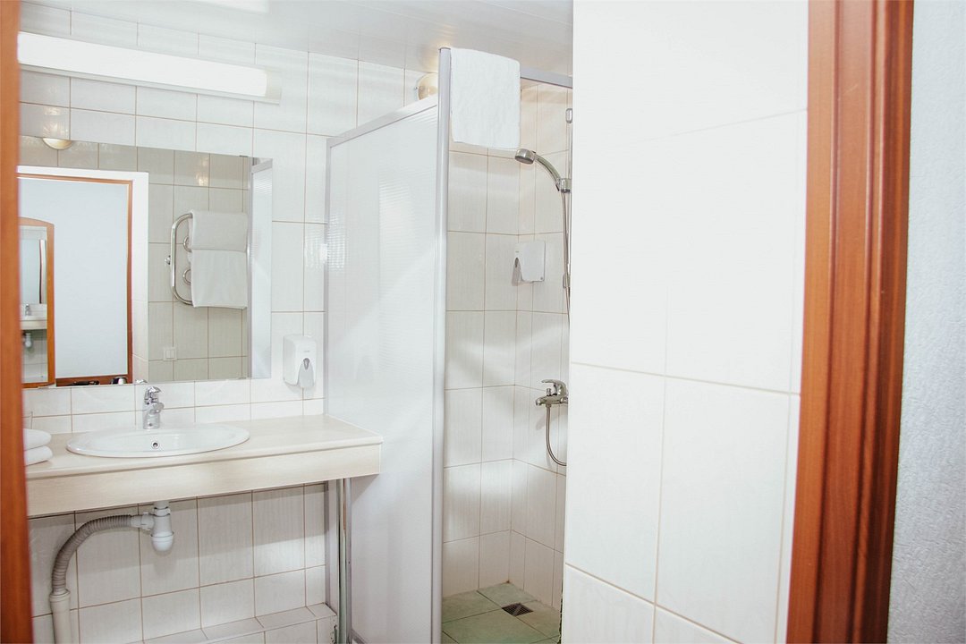 телевизор, Wi-Fi, светильник, фен, ванная комната, душевая кабина, тапочки, гигиенические средства, односпальная кровать, тумбы, стулья, шкаф для одежды, вешалки, зеркало, чайник, унитаз, раковина, отопление, душ, стул, стол, туалетные средства, туалет, внутренний телефон, мини-холодильник, москитная сетка, номер для некурящих, мыло, можно с питомцамиВ номере