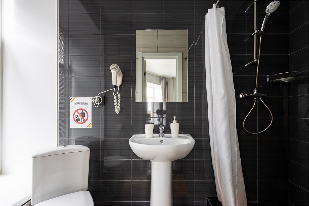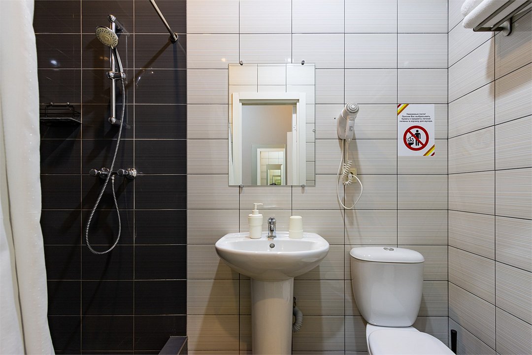 телевизор, кабельное телевидение, Wi-Fi, интернет, светильник, фен, душевая кабина, санузел, тапочки, косметические средства, односпальная кровать, тумбы, шкаф для одежды, зеркало, унитаз, раковина, отопление, душ, вид на город, кулер на этаже, вид во двор, стаканы, стул, туалетные средства, туалет, внутренний телефон, телевизор с плоским экраном, москитная сетка, номер для некурящих, рабочий стол, уборка номера, вешалки-плечики, мыло, затемняющая штора, зеркало в полный рост, открытый шкаф, прачечная (за дополнительную плату)В номере