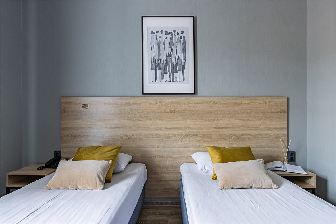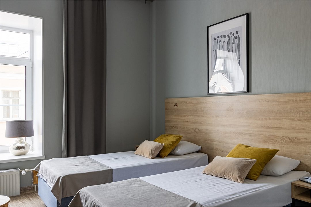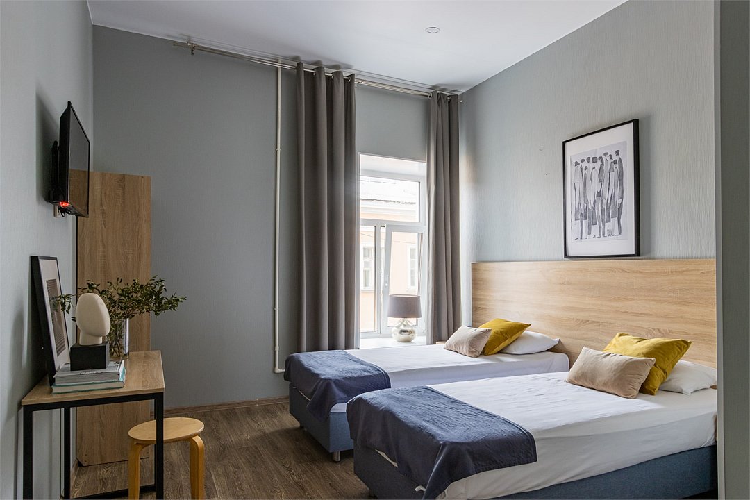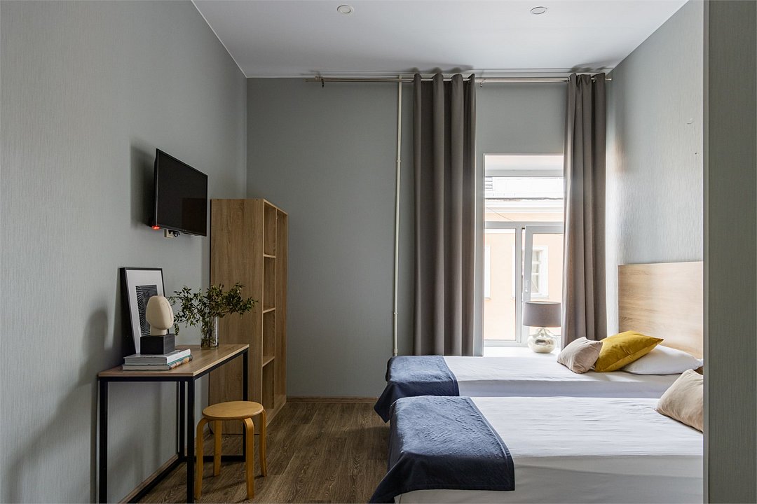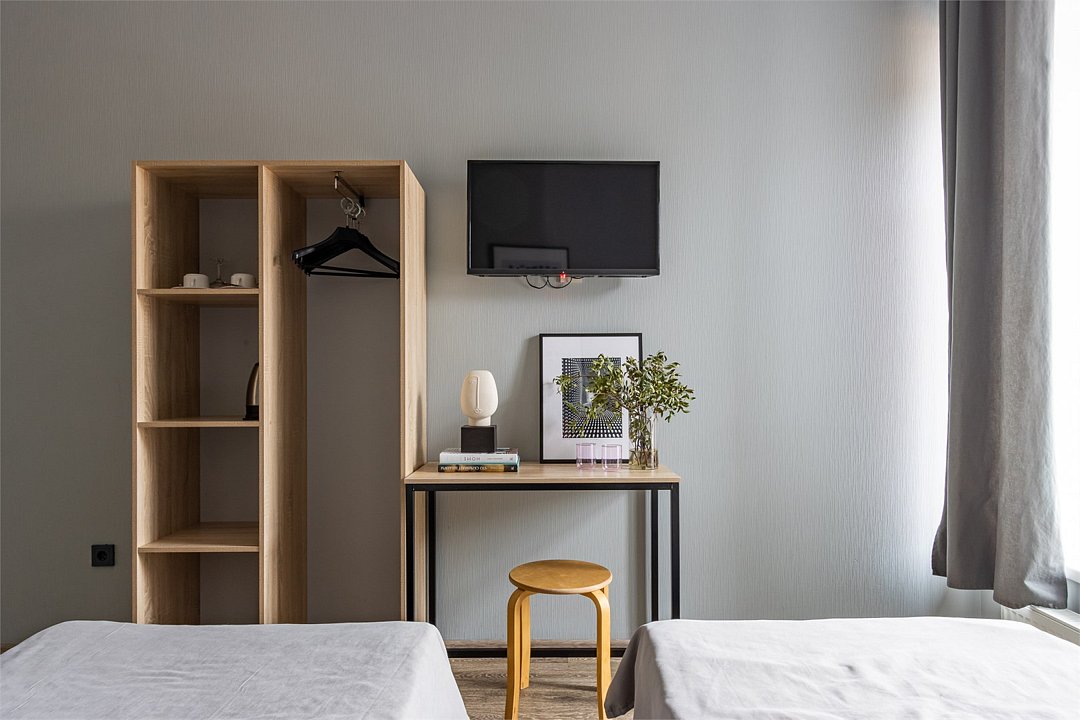 телевизор, кабельное телевидение, Wi-Fi, интернет, светильник, фен, душевая кабина, санузел, тапочки, косметические средства, две односпальные кровати, шкаф для одежды, зеркало, чайник, унитаз, раковина, отопление, душ, вид на город, вид во двор, стаканы, стул, туалетные средства, туалет, внутренний телефон, телевизор с плоским экраном, москитная сетка, номер для некурящих, рабочий стол, уборка номера, вешалки-плечики, мыло, затемняющая штора, зеркало в полный рост, открытый шкаф, прачечная (за дополнительную плату)В номере