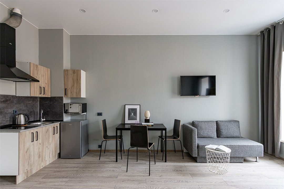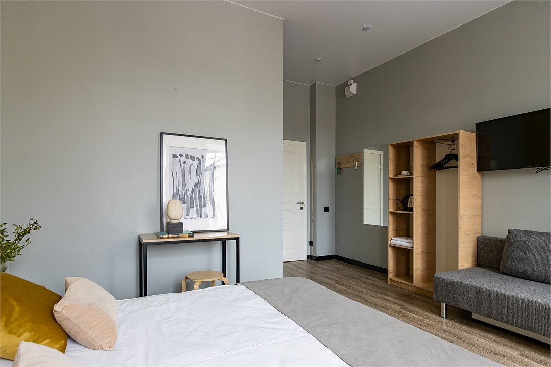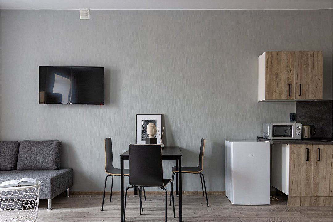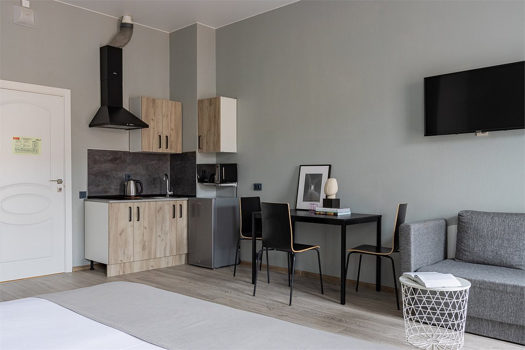телевизор, кабельное телевидение, Wi-Fi, интернет, светильник, фен, плита для приготовления пищи, микроволновая печь, душевая кабина, санузел, тапочки, косметические средства, двуспальная кровать, тумбы, стулья, шкаф для одежды, обеденный стол, зеркало, кухня, чайный набор, набор посуды, сейф, чайник, унитаз, раковина, обеденная зона, отопление, душ, кухонная посуда, стаканы, кухонная утварь, столовые приборы, туалетные средства, туалет, диван-кровать, раскладной диван, внутренний телефон, телевизор с плоским экраном, мини-холодильник, мини-кухня, кухонный уголок, москитная сетка, номер для некурящих, рабочий стол, уборка номера, набор для приготовления чая и кофе, вешалки-плечики, мыло, затемняющая штора, зеркало в полный рост, открытый шкафВ номере