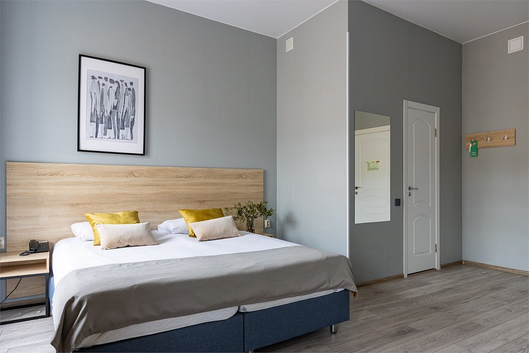 двуспальная кровать прикроватные тумбочки телевизор бесплатный wi-fi душ туалет косметические принадлежности постельное белье, полотенца тапочки фен телефон сейф зубной наборУслуги и удобства