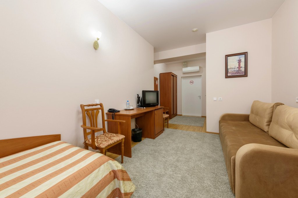 В номере вы найдёте телевизор, мини-бар и халат. Перечисленные услуги есть не во всех номерах.