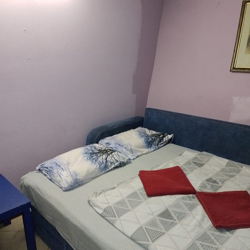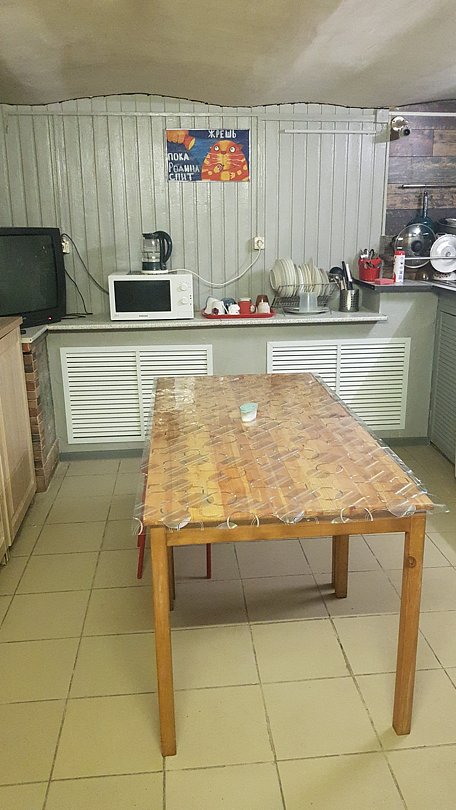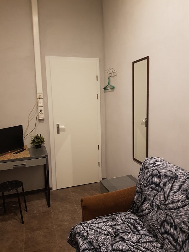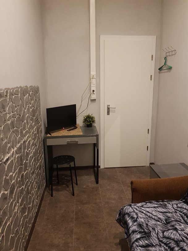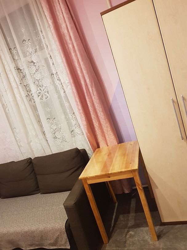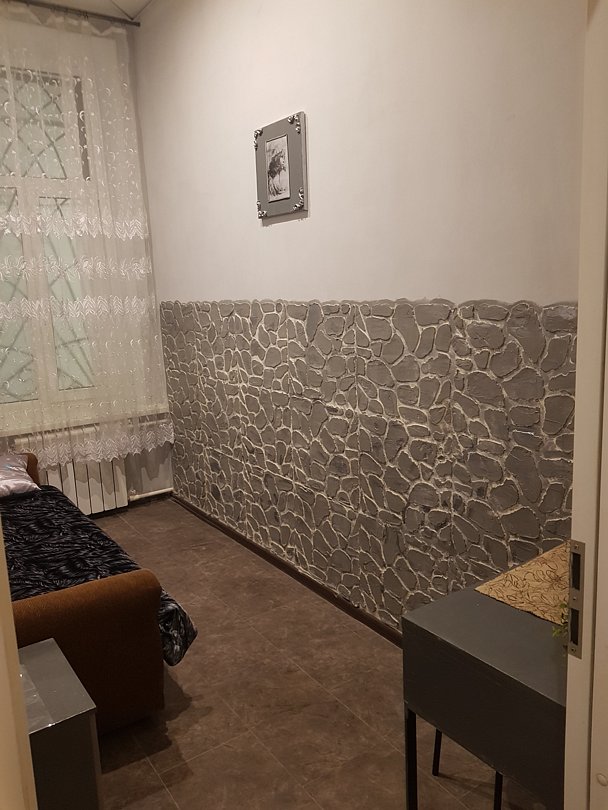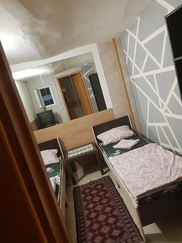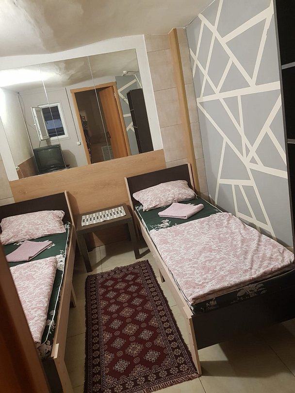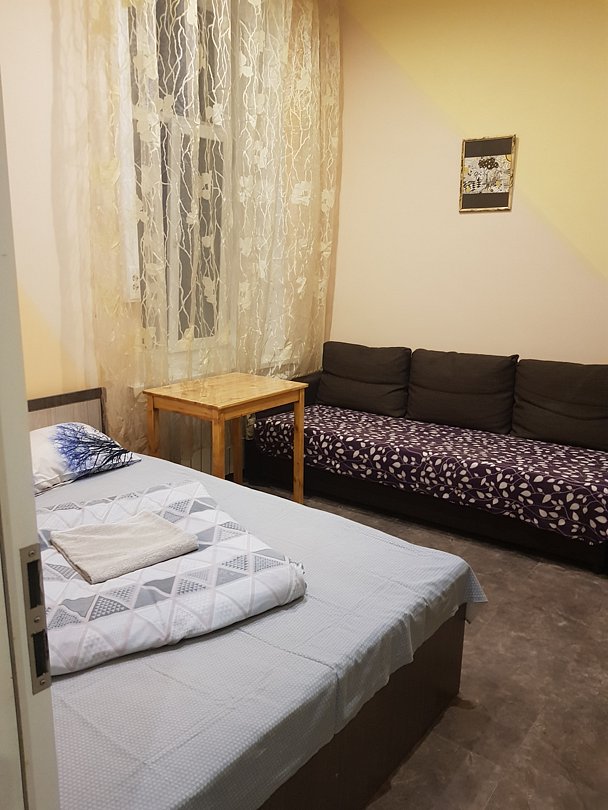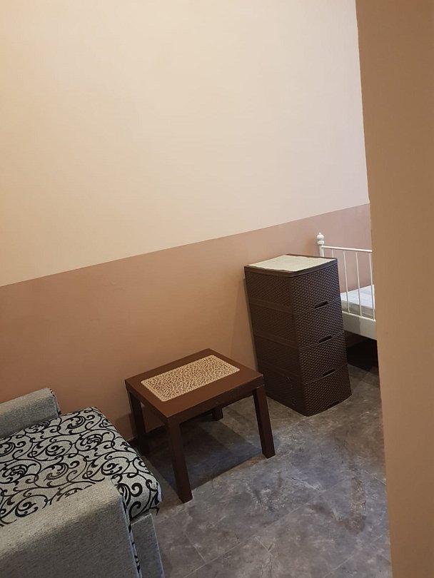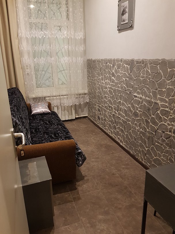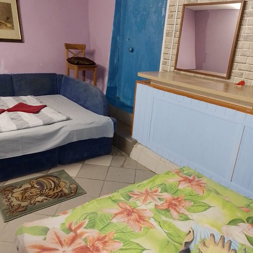Просторный удобный номер (19м), находящийся на цокольном этаже. Номер без окон, но с дверью, выходящей во внутренний двор. В комнате два больших дивана, шкаф, журнальный столик, зеркало и чайник. Подойдет для комфортного размещения 1-4 человек.В номере