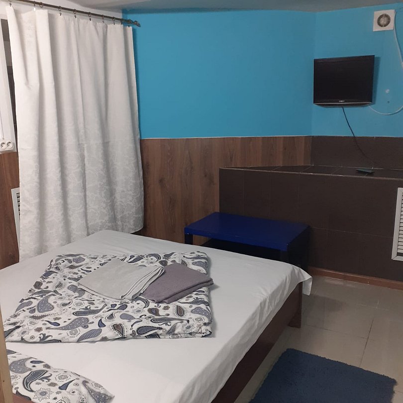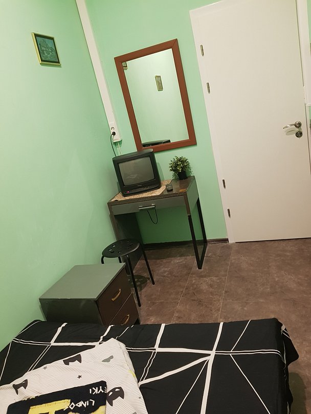 Уютный небольшой номер эконом-класса на 2-х человек, расположенный на 1 этаже с большим окном, выходящим в тихий двор. В номере двухместный диван, настенное зеркало, встроенный вентилятор, стол, телевизор, вешалка для одежды, тумбочка и чайник(по желанию).В номере