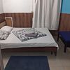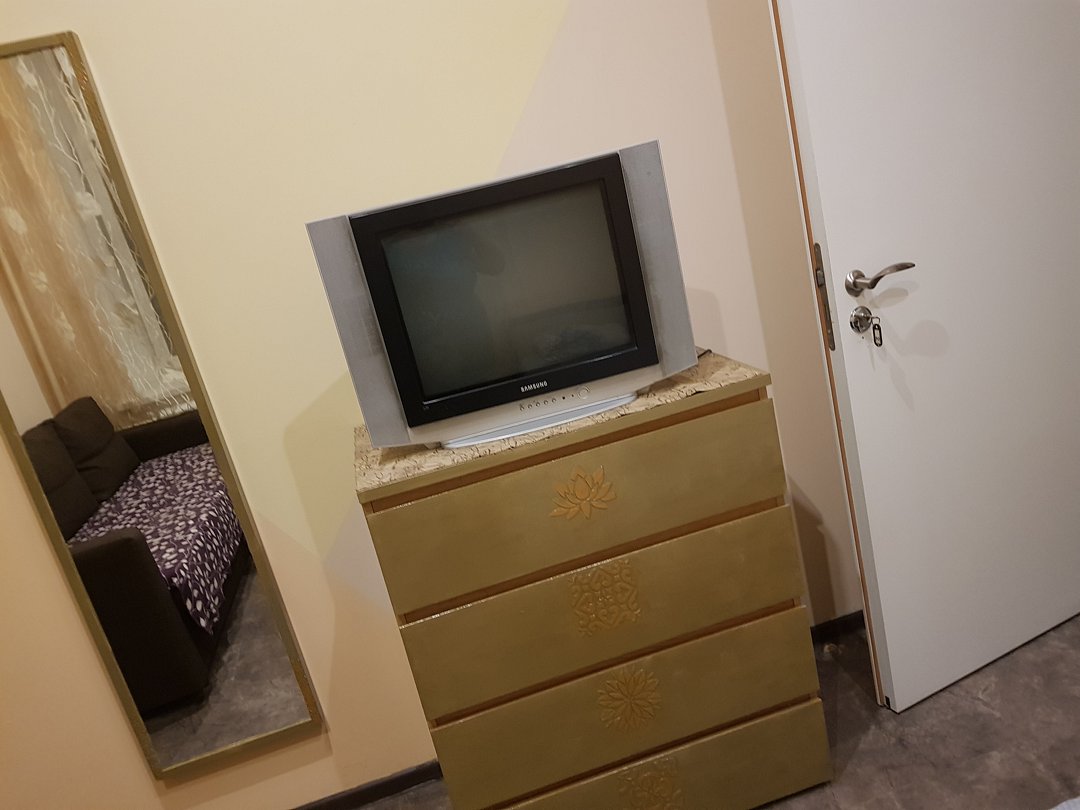 Просторный номер для 1-4-х человек со шкафом и телевизором. Кроме этого в номере есть комод, большое настенное зеркало, стол. Большое окно выходит в тихий двор. Спальные места представлены двухместной кроватью и большим раскладным удобным диваном.В номере