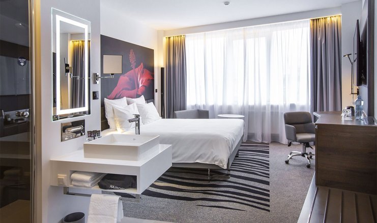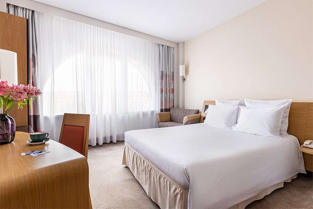 Современный номер с кроватью Queen size, рабочей зоной и панорамным видом на город. Оснащён капсульной кофемашиной, чайным набором, гладильной доской и утюгом. Бесплатный Wi-Fi доступен на всей территории отеля. Гостям предоставляется доступ к фитнес-центру и хаммаму с 06:00 до 23:00. В номерах возможно размещение с ребёнком до 7 лет без предоставления дополнительного спального места или на кушетке. Номер идеально подходит для комфортного отдыха или деловых поездок.Услуги и удобства
